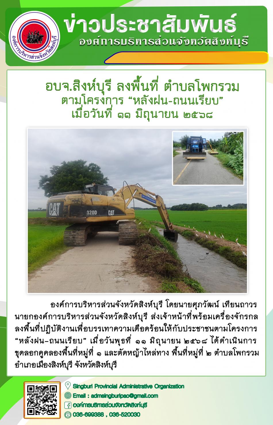 อบจ.สิงห์บุรี ลงพื้นที่ ตำบลโพกรวม ตามโครงการ "หลังฝน - ถนนเรียบ" [11 มิถุนายน 2568]