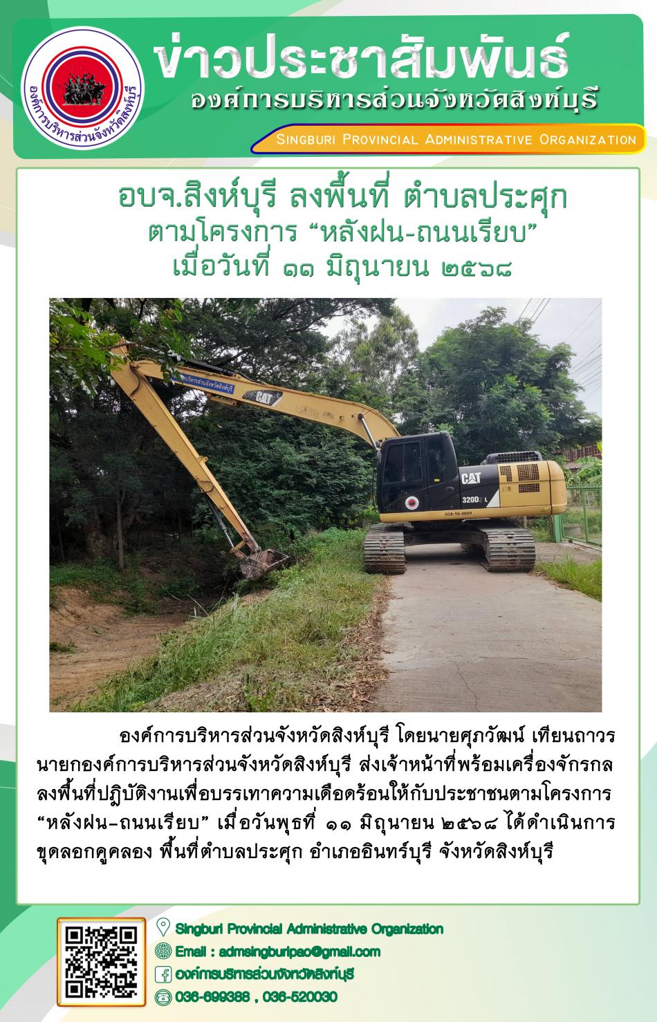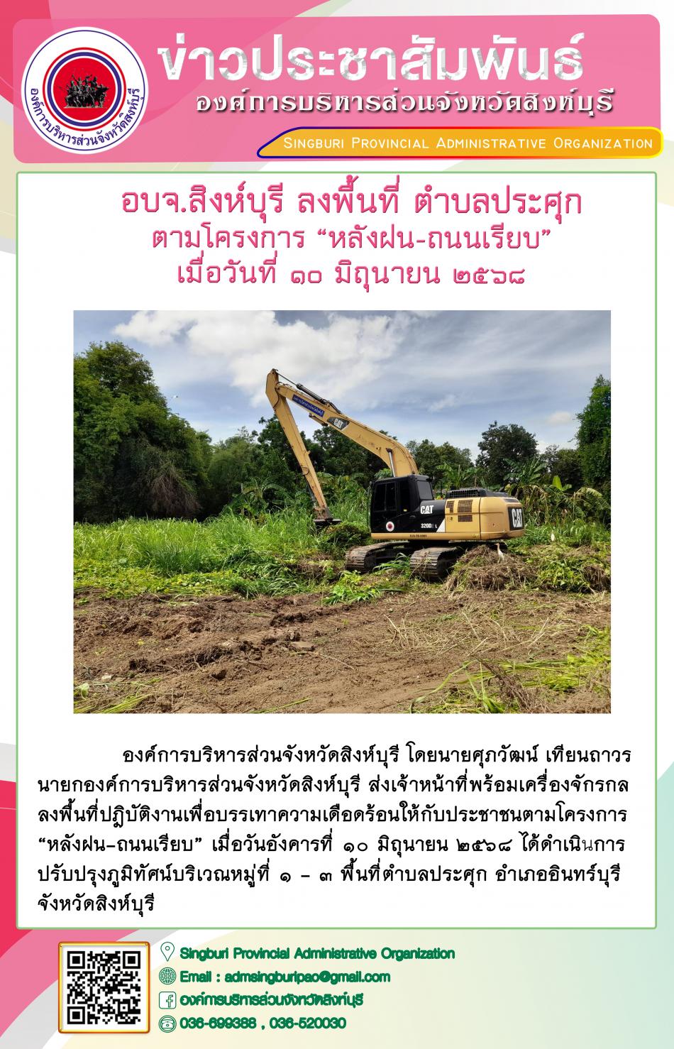 อบจ.สิงห์บุรี ลงพื้นที่ ตำบลประศุก ตามโครงการ "หลังฝน - ถนนเรียบ" [11 มิถุนายน 2568]