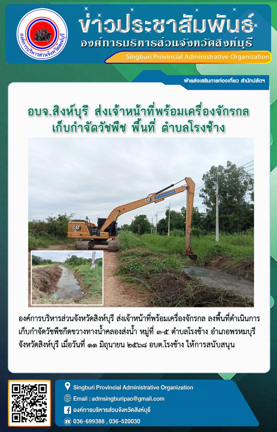 อบจ.สิงห์บุรี ส่งเจ้าหน้าที่พร้อมเครื่องจักรกล เก็บกำจัดวัชพืช พื้นที่ ตำบลโรงช้าง [11 มิถุนายน 2568]