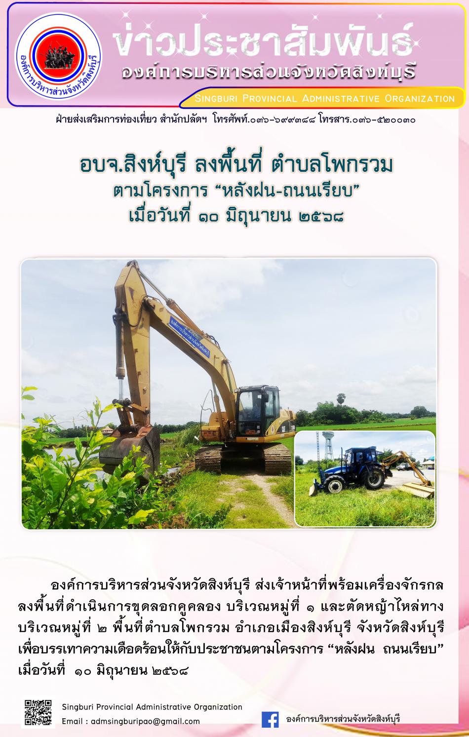 อบจ.สิงห์บุรี ลงพื้นที่ ตำบลโพกรวม ตามโครงการ "หลังฝน - ถนนเรียบ" [10 มิถุนายน 2568]