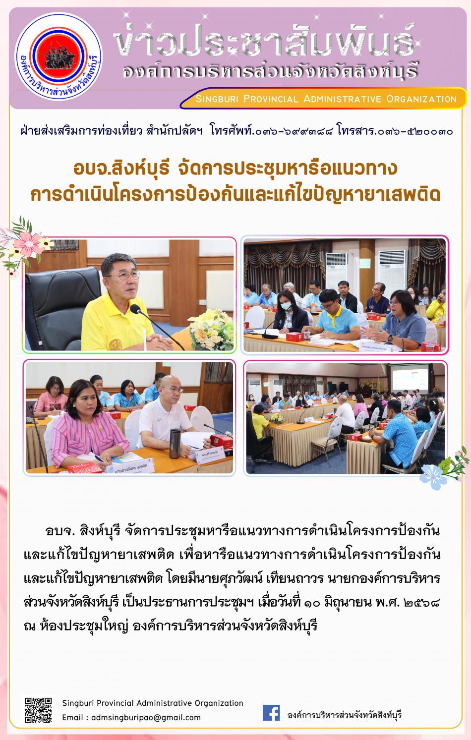 อบจ.สิงห์บุรี จัดการประชุมหารือแนวทางการดำเนินโครงการป้องกันและแก้ไขปัญหายาเสพติด [10 มิถุนายน 2568]