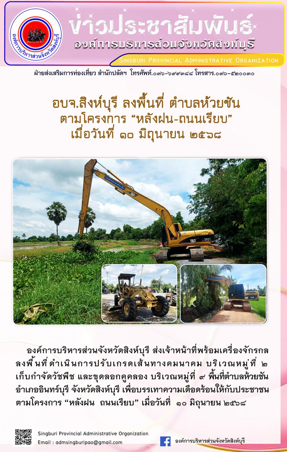 อบจ.สิงห์บุรี ลงพื้นที่ ตำบลห้วยชัน ตามโครงการ "หลังฝน - ถนนเรียบ" [10 มิถุนายน 2568]