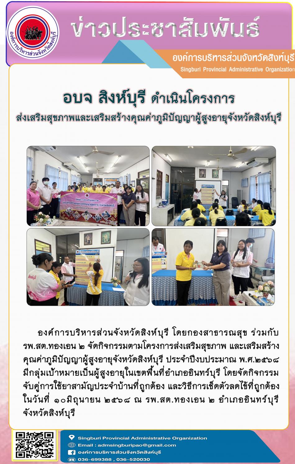 อบจ.สิงห์บุรี ดำเนินโครงการส่งเสริมสร้างสุขภาพและเสริมคุณค่าภูมิปัญญาผู้สูงอายุจังหวัดสิงห์บุรี [10 มิถุนายน 2568]