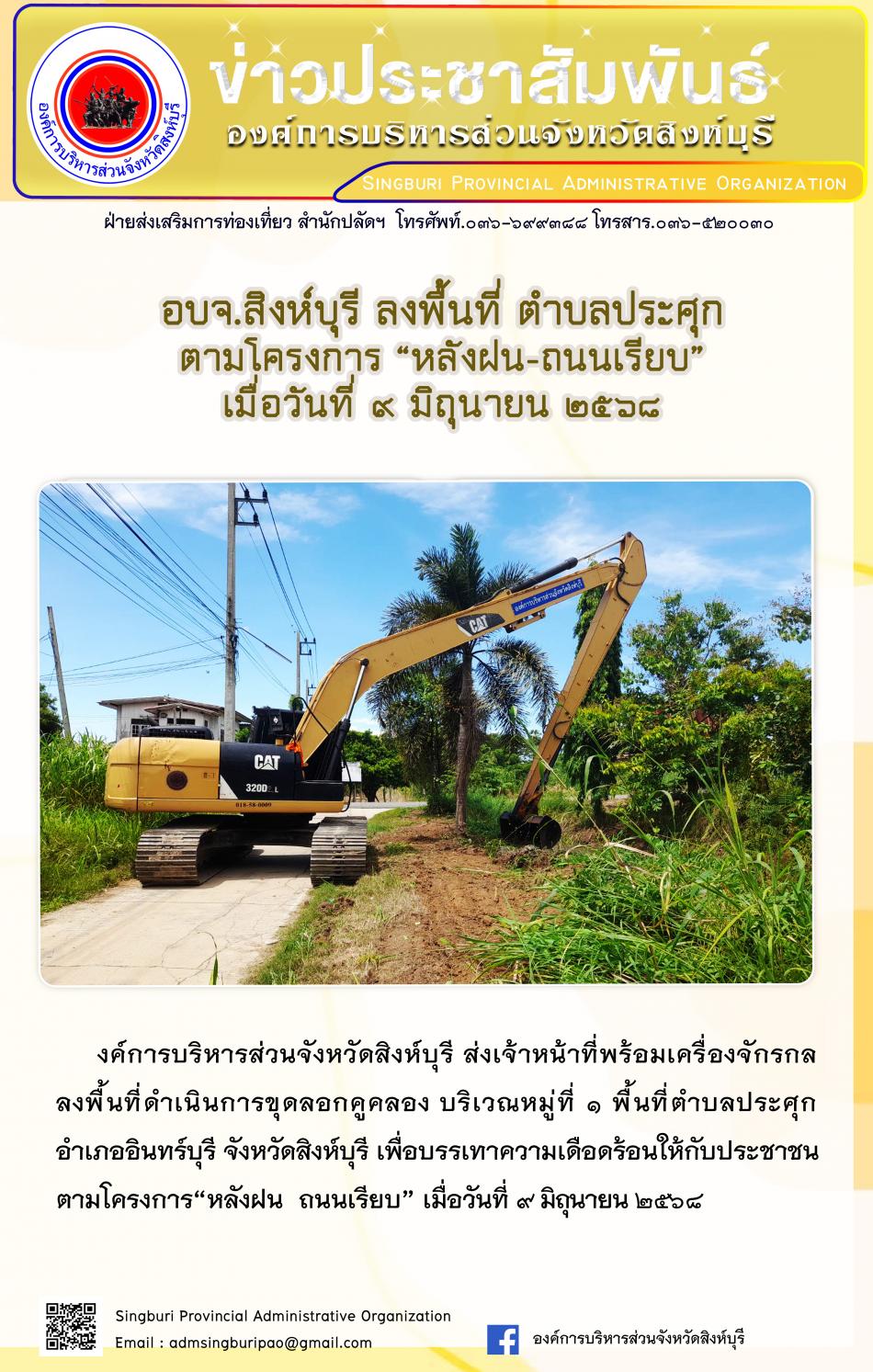 อบจ.สิงห์บุรี ลงพื้นที่ ตำบลประศุก ตามโครงการ "หลังฝน - ถนนเรียบ" [9 มิถุนายน 2568]