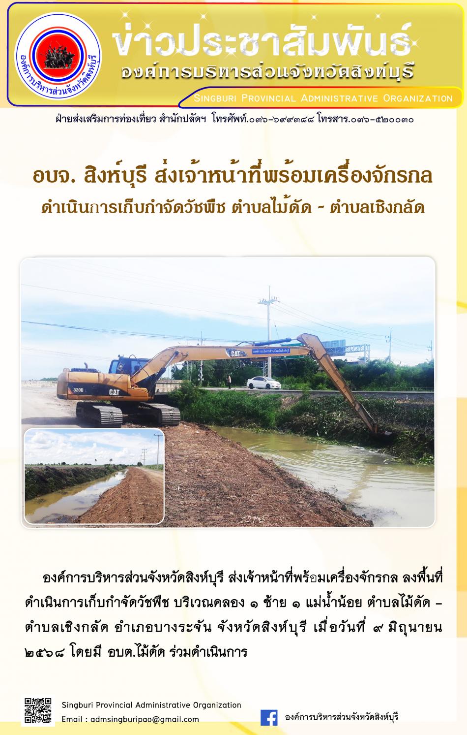 อบจ.สิงห์บุรี ส่งเจ้าหน้าที่พร้อมเครื่องจักรกล เก็บกำจัดวัชพืช ตำบลไม้ดัด - ตำบลเชิงกลัด [9 มิถุนายน 2568]