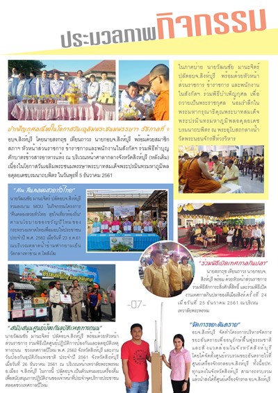 จดหมายข่าวจากท้องถิ่น อบจ.สิงห์บุรี ฉบับที่ 36 ประจำเดือนตุลาคม - ธันวาคม 2561