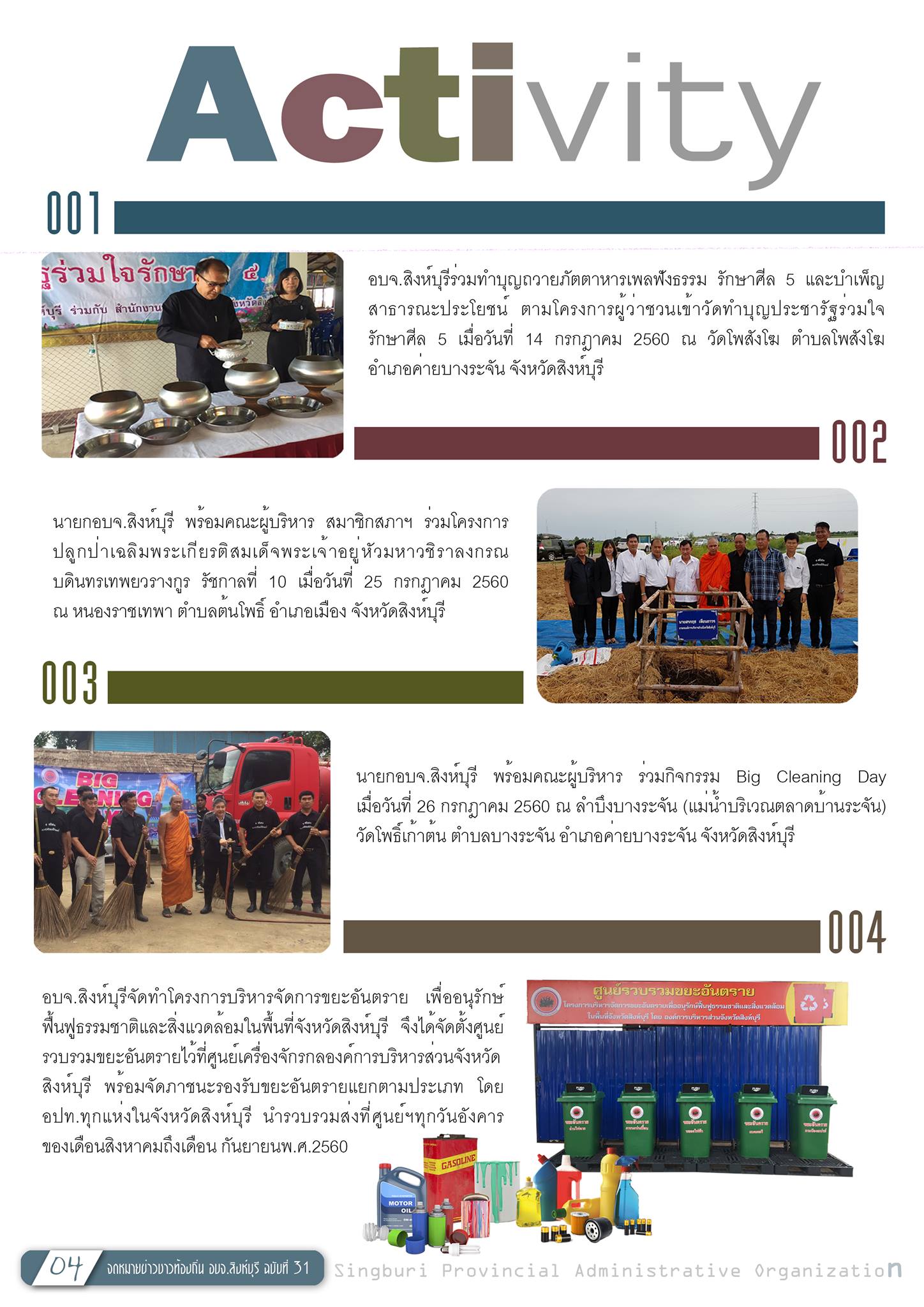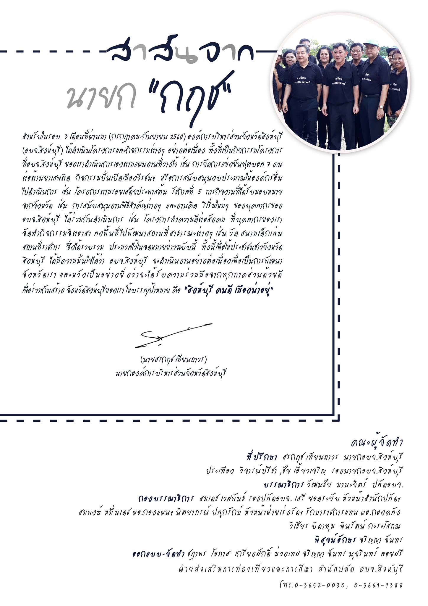 จดหมายข่าวจากท้องถิ่น อบจ.สิงห์บุรี ฉบับที่ 31 ประจำเดือนกรกฏาคม - กันยายน 2560