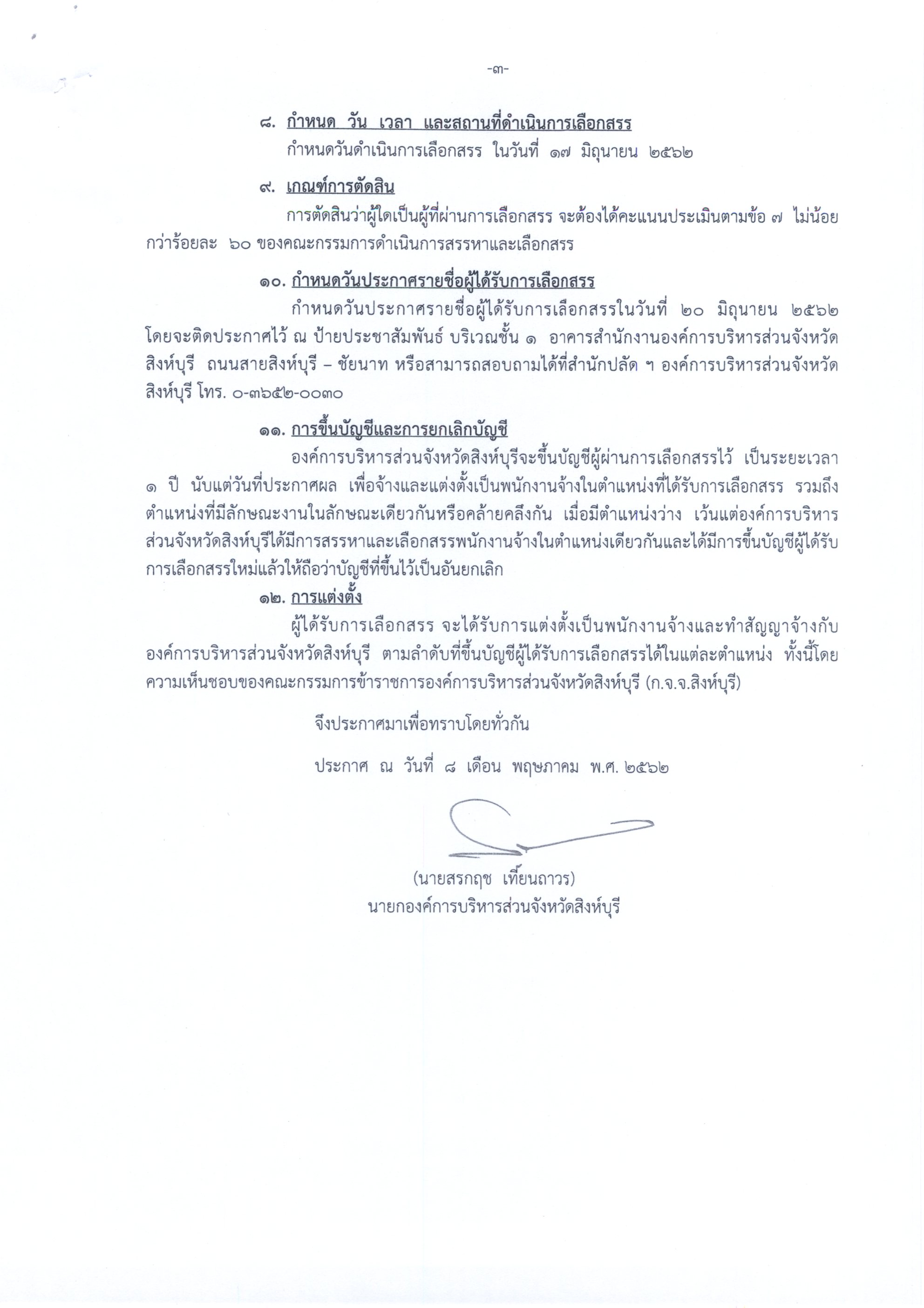 ประกาศองค์การบริหารส่วนจังหวัดสิงห์บุรี เรื่อง รับสมัครบุคคลเพื่อเลือกสรรเป็นพนักงานจ้าง
