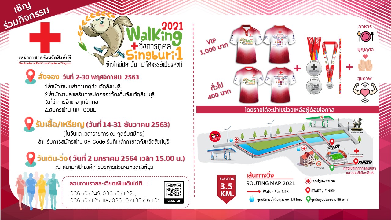 เหล่ากาชาดจังหวัดสิงห์บุรี ขอเชิญร่วมกิจกรรม Walking 2021 วิ่งการกุศล Singburi #1 ข้าวใหม่ปลามัน มหัศจรรย์เมืองสิงห์