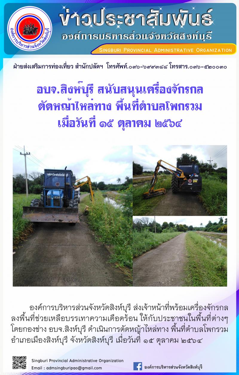 อบจ.สิงห์บุรี สนับสนุนเครื่องจักรกลกำจัดวัชพืช พื้นที่ตำบลโพกรวม และวิหารขาว