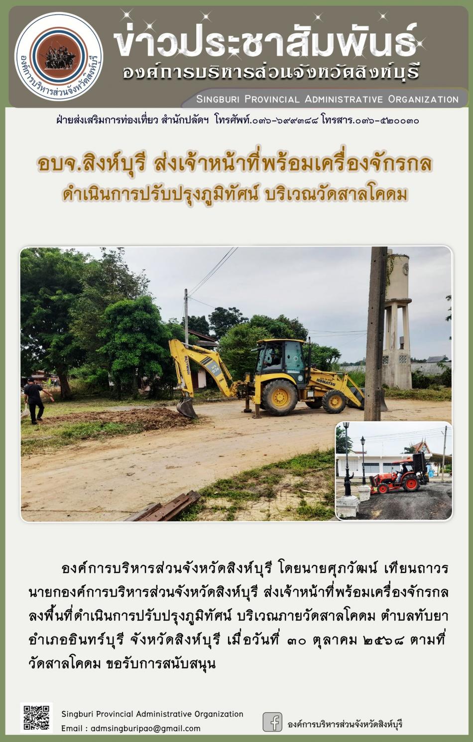 อบจ.สิงห์บุรี ส่งเจ้าหน้าที่พร้อมเครื่องจักรกล ดำเนินการปรับปรุงภูมิทัศน์ บริเวณวัดศาลาโคดม [30 ตุลาคม 2568]
