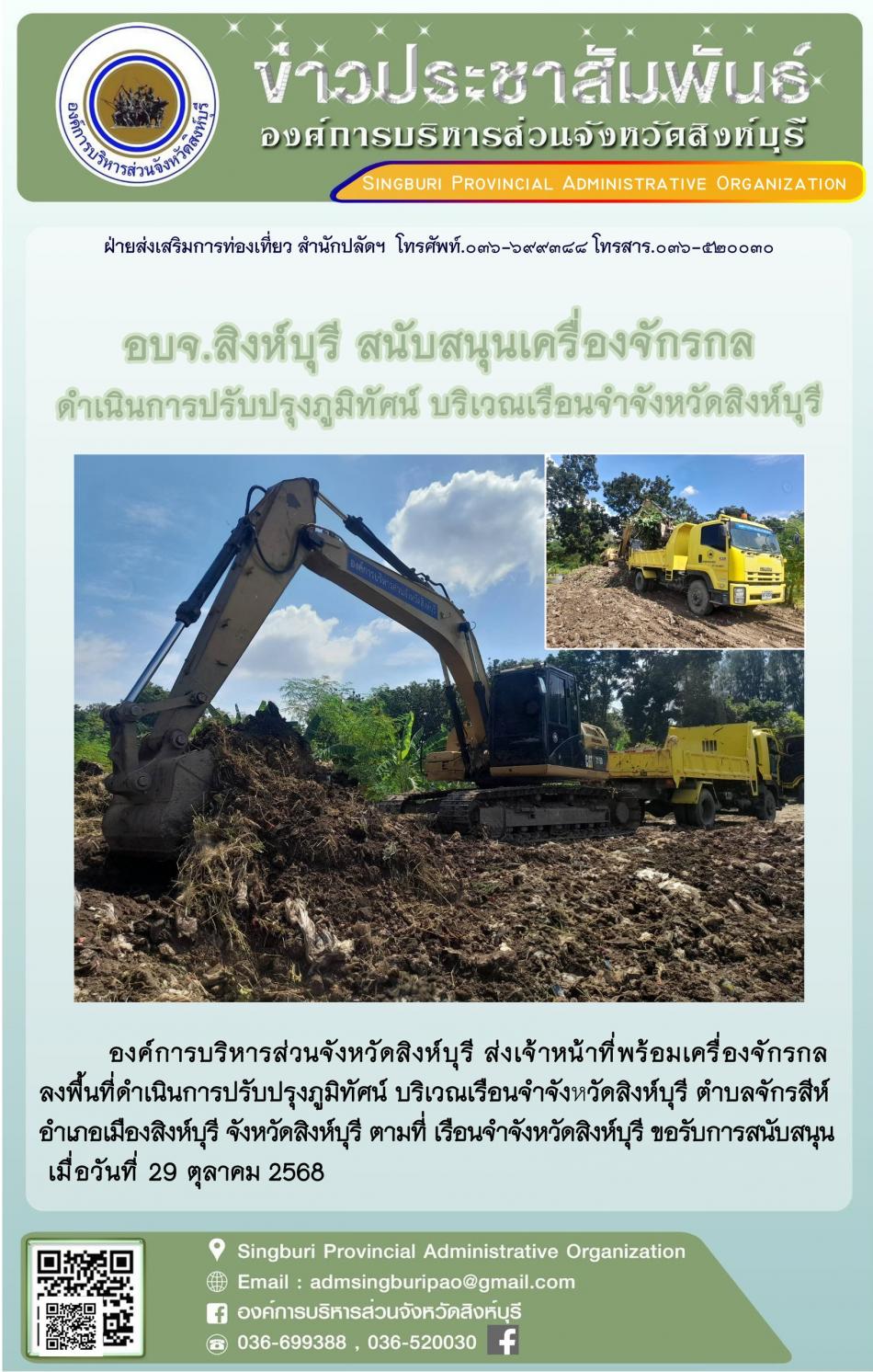 อบจ.สิงห์บุรี สนับสุนเครื่องจักรกล ดำเนินการปรับปรุงภูมิทัศน์ บริเวณเรือนจำจังหวัดสิงห์บุรี [29 ตุลาคม 2568]