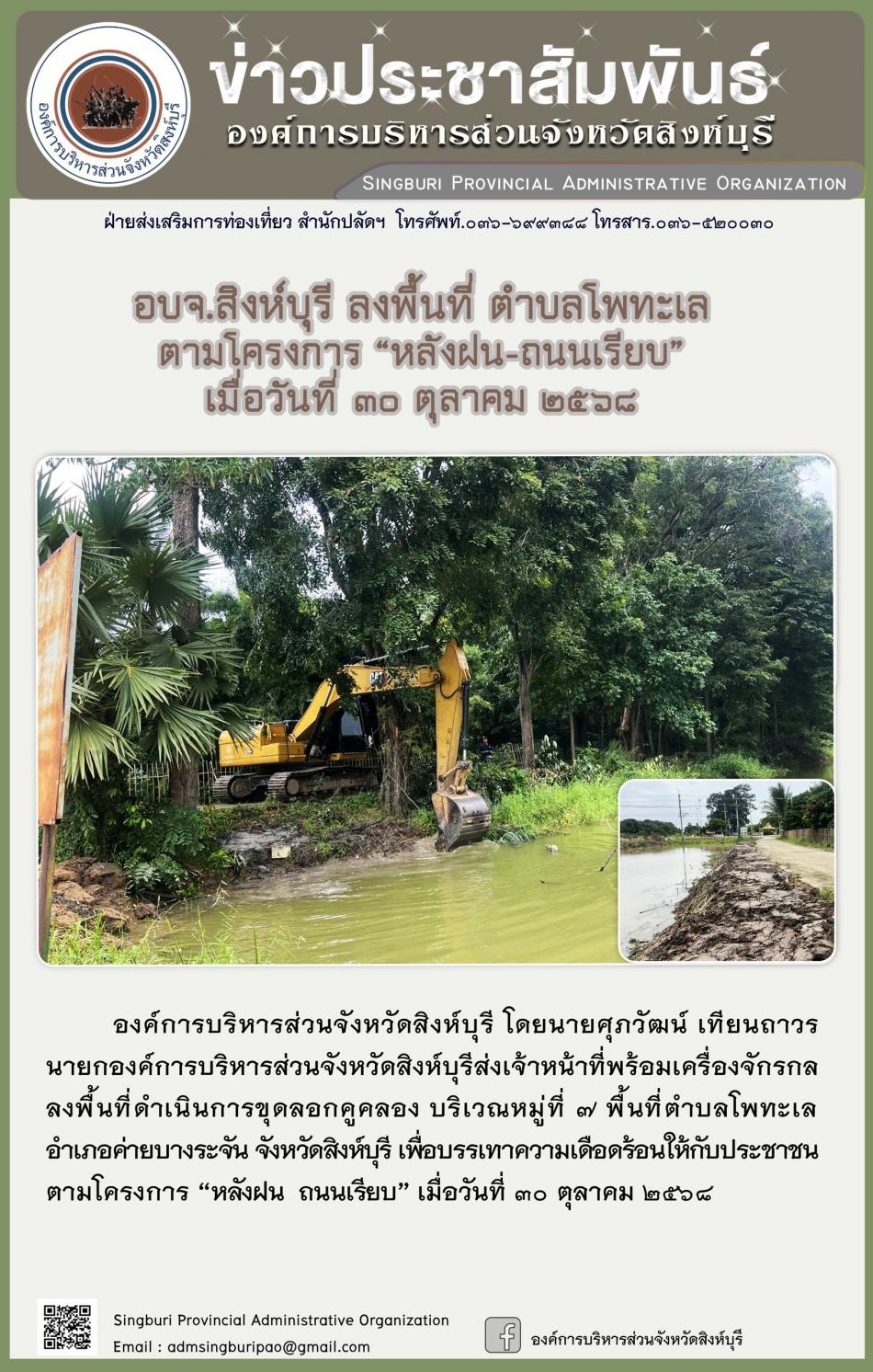 อบจ.สิงห์บุรี ลงพื้นที่ ตำบลโพทะเล โครงการ “ หลัง ฝน- ถนนเรียบ” [30 ตุลาคม 2568]