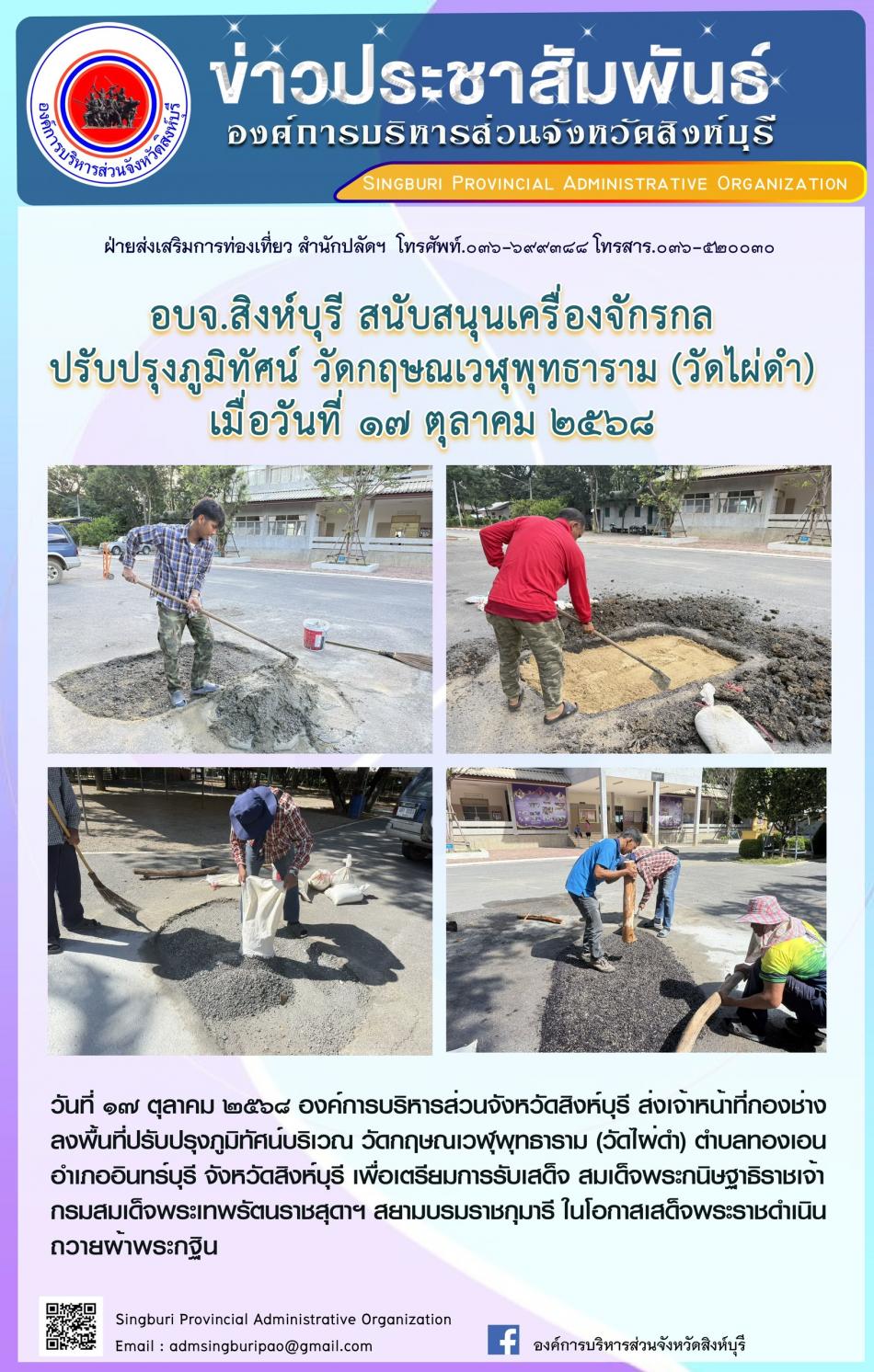 อบจ.สิงห์บุรี สนับสนุนเครื่องจักรกล ปรับปรุงภูมิทัศน์ วัดกฤษณเวฬุพุทธาราม (วัดไผ่ดำวัดไผ่ดำ) [17 ตุลาคม 2568]