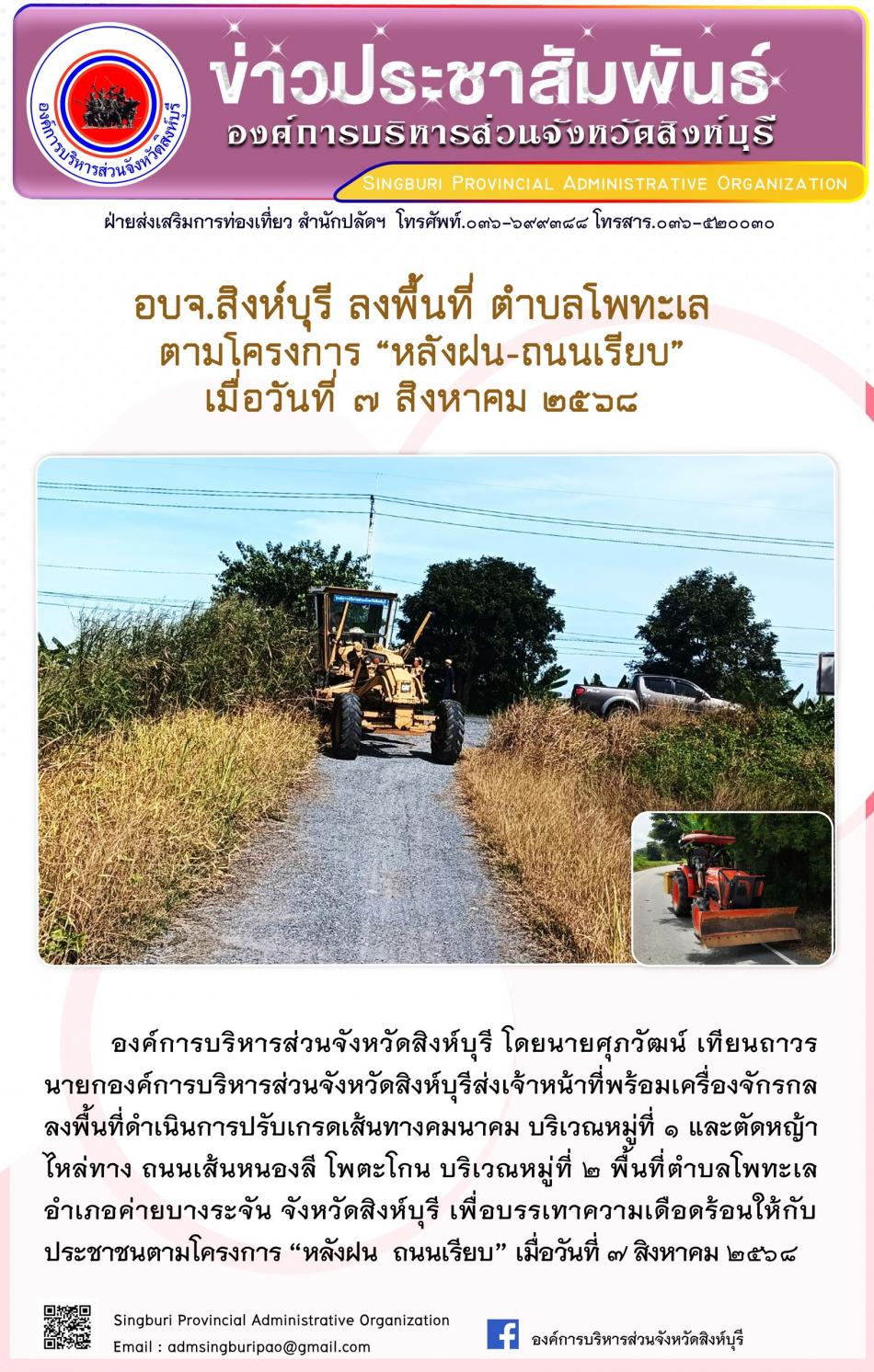 อบจ.สิงห์บุรี ลงพื้นที่ ตำบลโพทะเล ตามโครงการ “ หลัง ฝน- ถนนเรียบ” [7 ตุลาคม 2568]