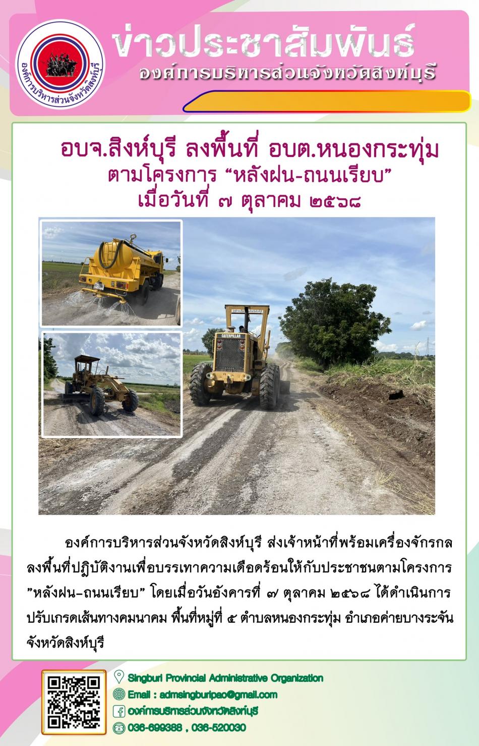 อบจ.สิงห์บุรี ลงพื้นที่ อบต.หนองกระทุ่ม ตามโครงการ “ หลัง ฝน- ถนนเรียบ” [7 ตุลาคม 2568]