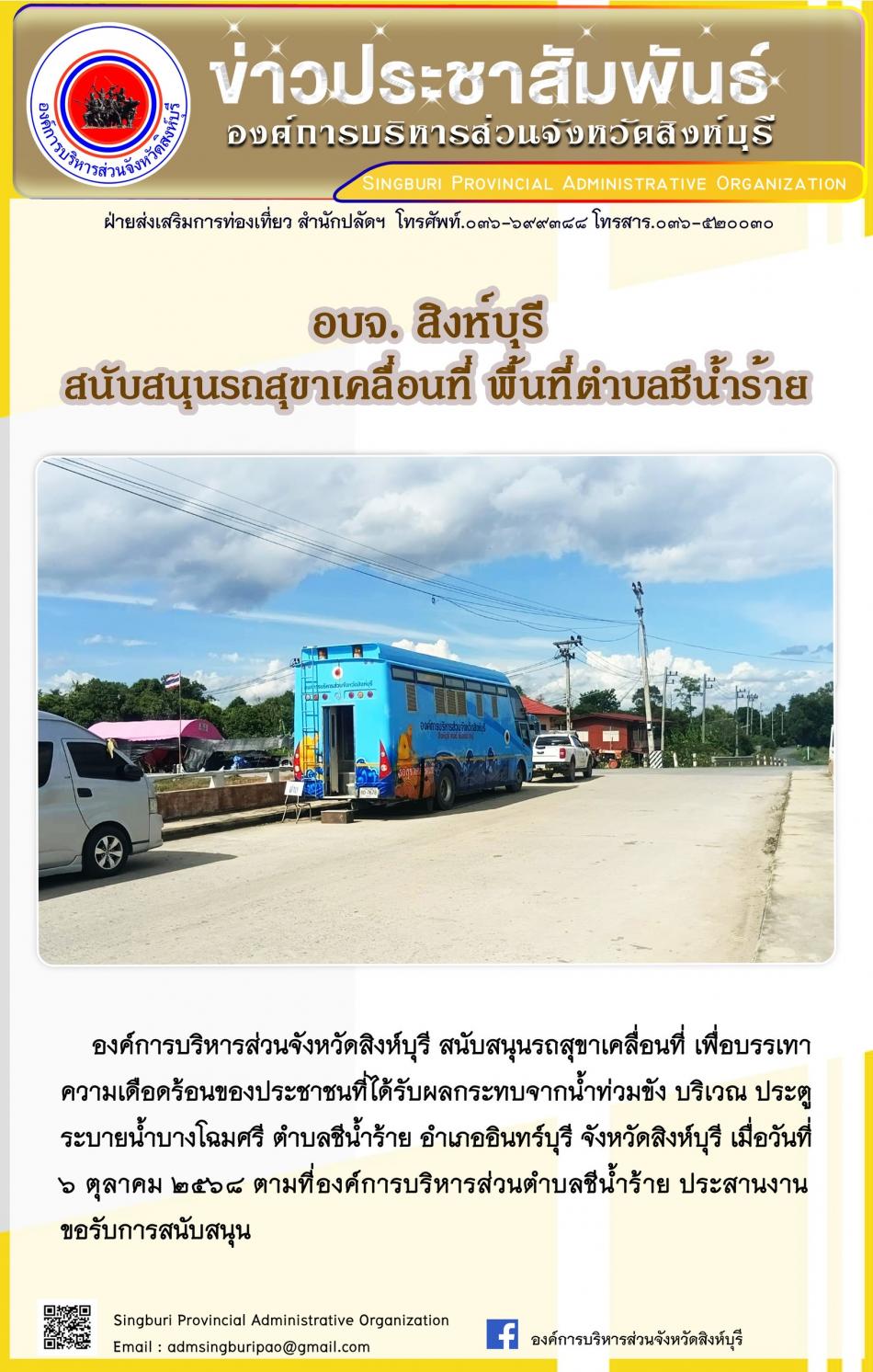 อบจ.สิงห์บุรี สนับสนุนรถสุขาเคลื่อนที่ พื้นที่ตำบลชีน้ำร้าย [6 ตุลาคม 2568]