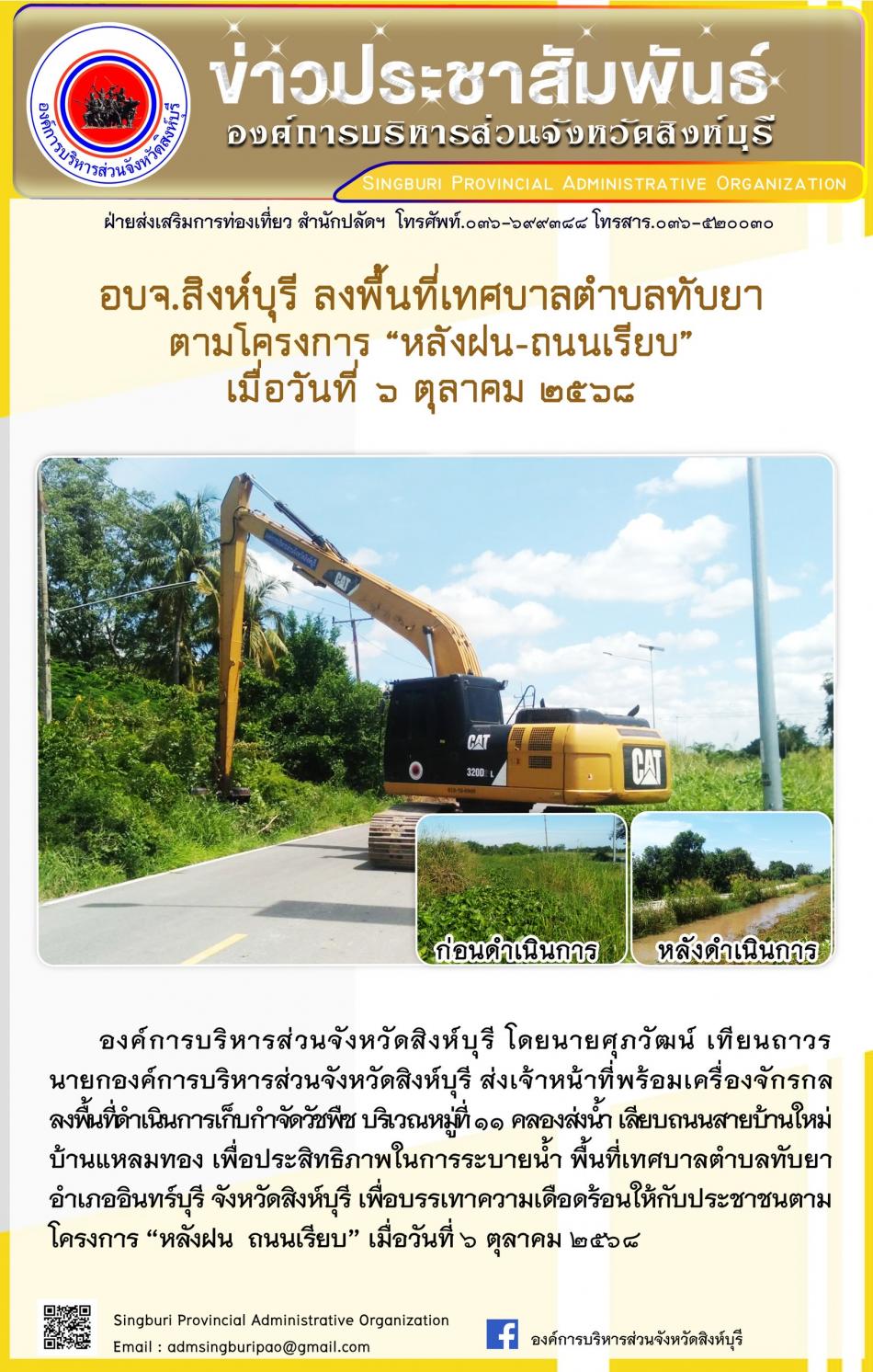 อบจ.สิงห์บุรี ลงพื้นที่ ตำบลทับยา ตามโครงการ “ หลัง ฝน- ถนนเรียบ” [6 ตุลาคม 2568]