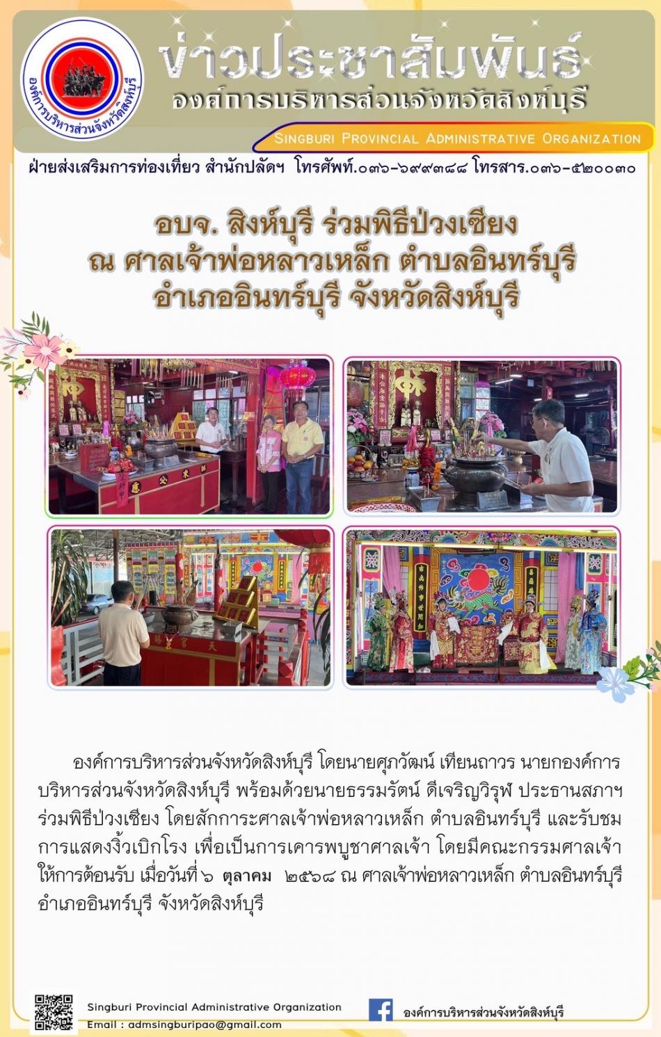 อบจ.สิงห์บุรี ร่วมพิธีป่วงเซียง ณ ศาลเจ้าพ่อหลาวเหล็ก ตำบลอินทร์บุรี อำเภออินทร์บุรี จังหวัดสิงห์บุรี [6 ตุลาคม 2568]