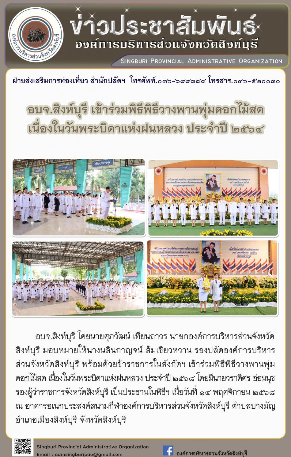 อบจ.สิงห์บุรี เข้าร่วมพิธีวางพานพุ่มดอกไม้สด เนื่องในวันพระบิดาแห่งฝนหลวง ประจำปี 2568 [14 พฤศจิกายน 2568]