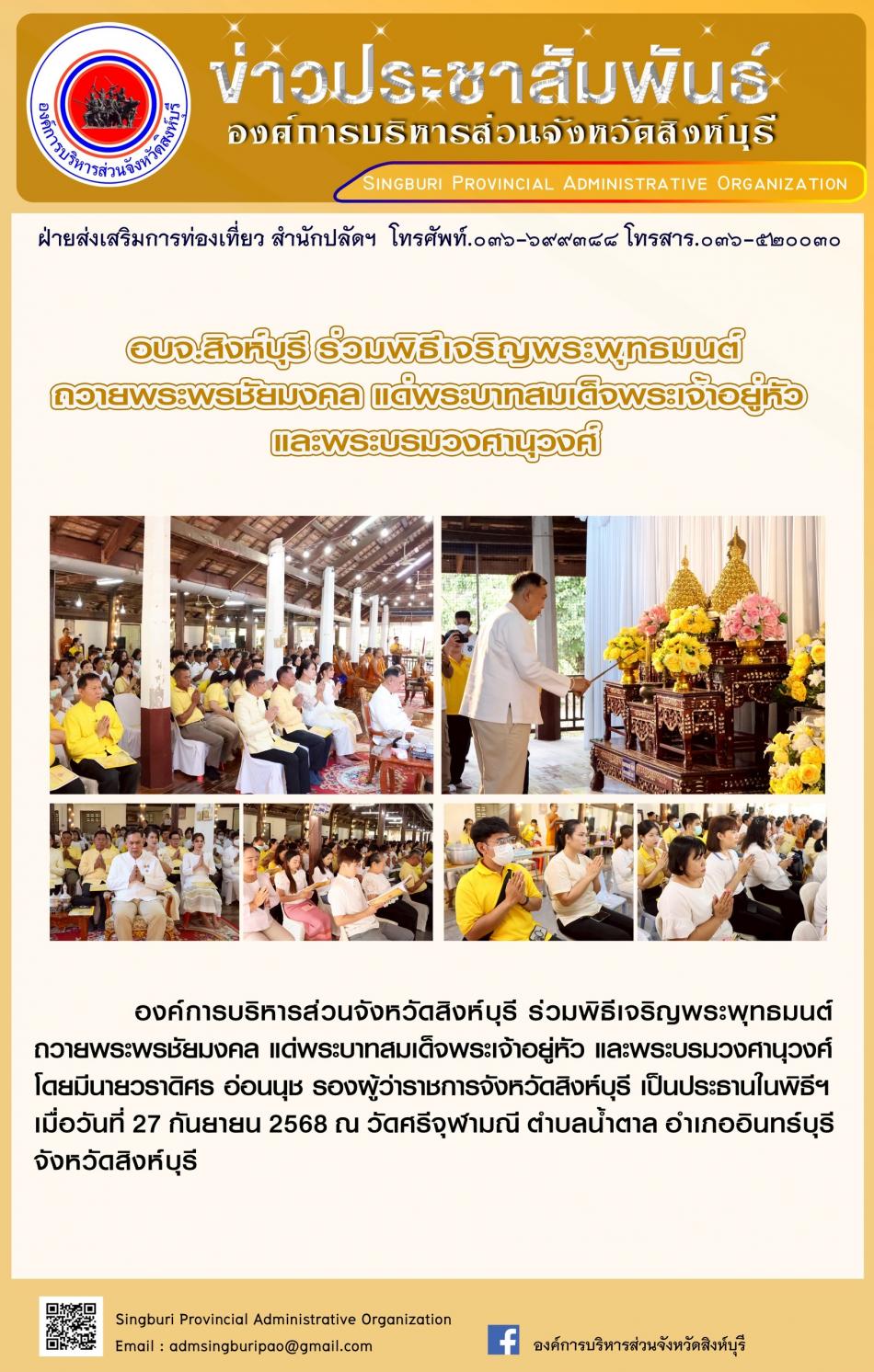 อบจ. สิงห์บุรี ร่วมพิธีเจริญพระพุทธมนต์ ถวายพระพรชัยมงคล แด่พระบาทรมเด็จพระเจ้าอยู่หัวและพระบรมวงศานุวงศ์ [27 กันยายน 2568]