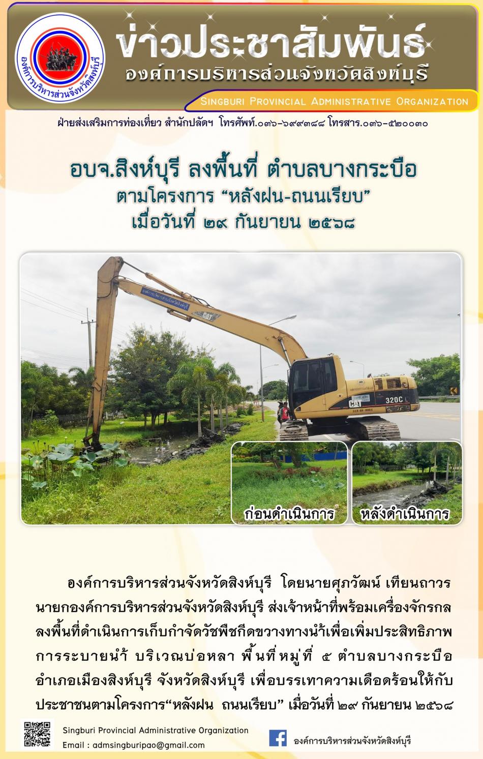 อบจ.สิงห์บุรี ลงพื้นที่ ตำบลบางกระบือ ตามโครงการ “ หลัง ฝน- ถนนเรียบ” [29 กันยายน 2568]