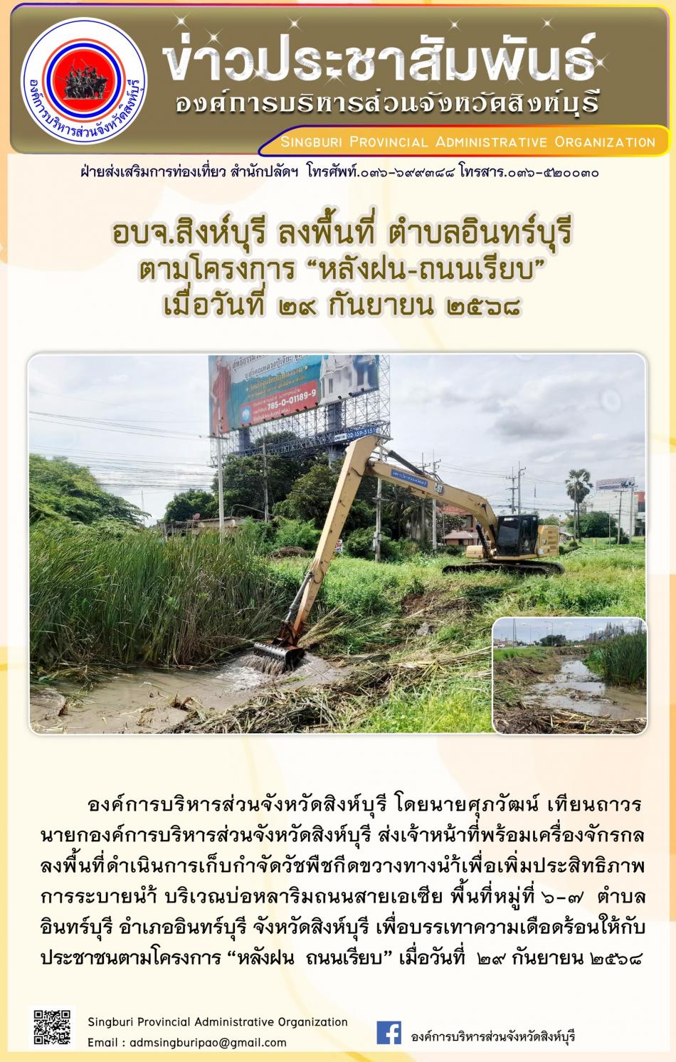 อบจ.สิงห์บุรี ลงพื้นที่ ตำบลอินทร์บุรี ตามโครงการ “ หลัง ฝน- ถนนเรียบ” [29 กันยายน 2568]
