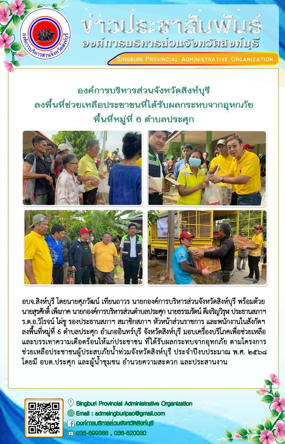 องค์การบริหารส่วนจังหวัดสิงห์บุรี ลงพื้นที่ช่วยเหลือประชาชนที่ได้รับผลกระทบจากอุทกภัย พื้นที่ตำบลประศุก [29 กันยายน 2568]
