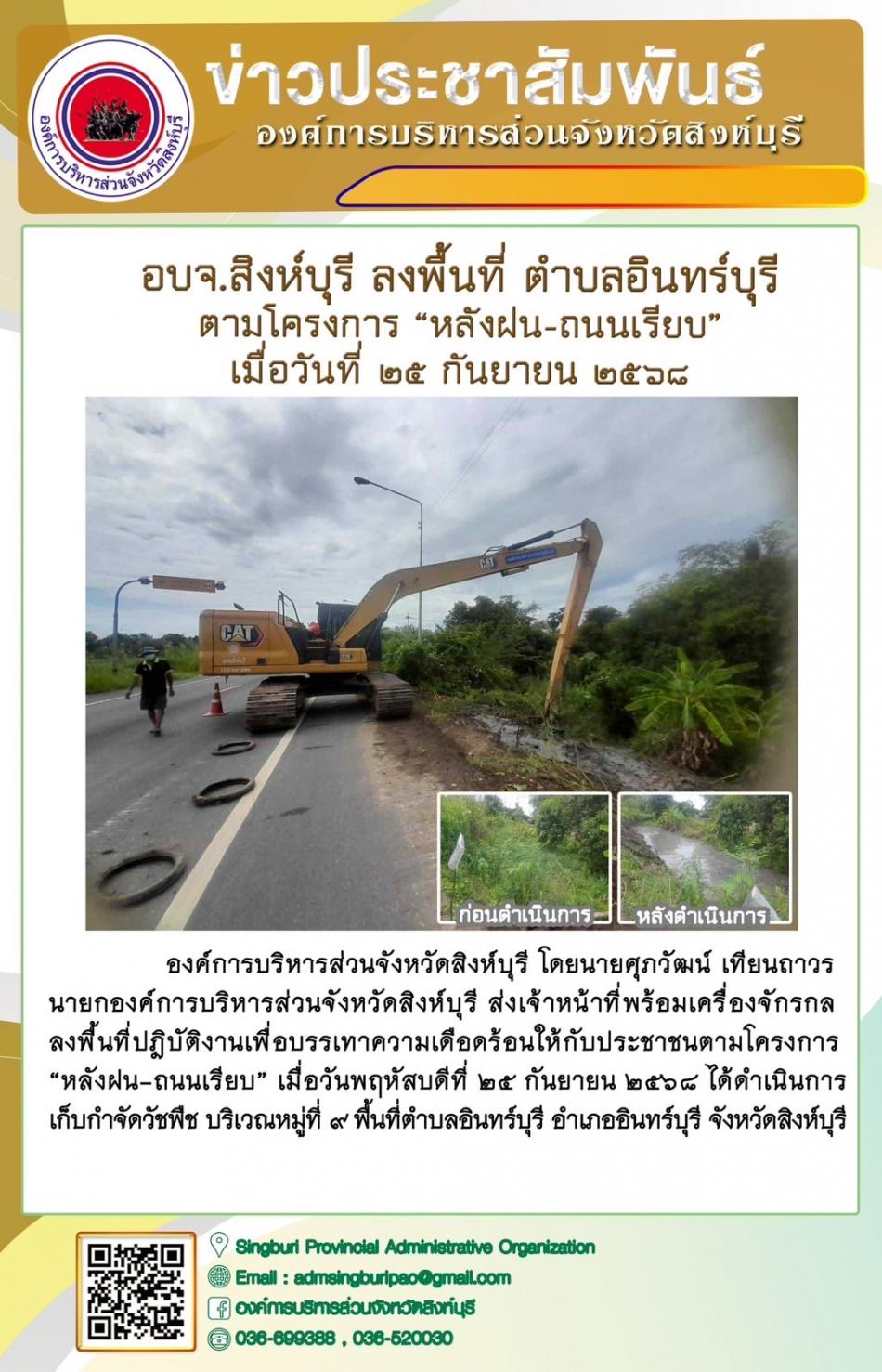 อบจ.สิงห์บุรี ลงพื้นที่ ตำบลอินทร์บุรี ตามโครงการ “ หลัง ฝน- ถนนเรียบ” [24 กันยายน 2568]