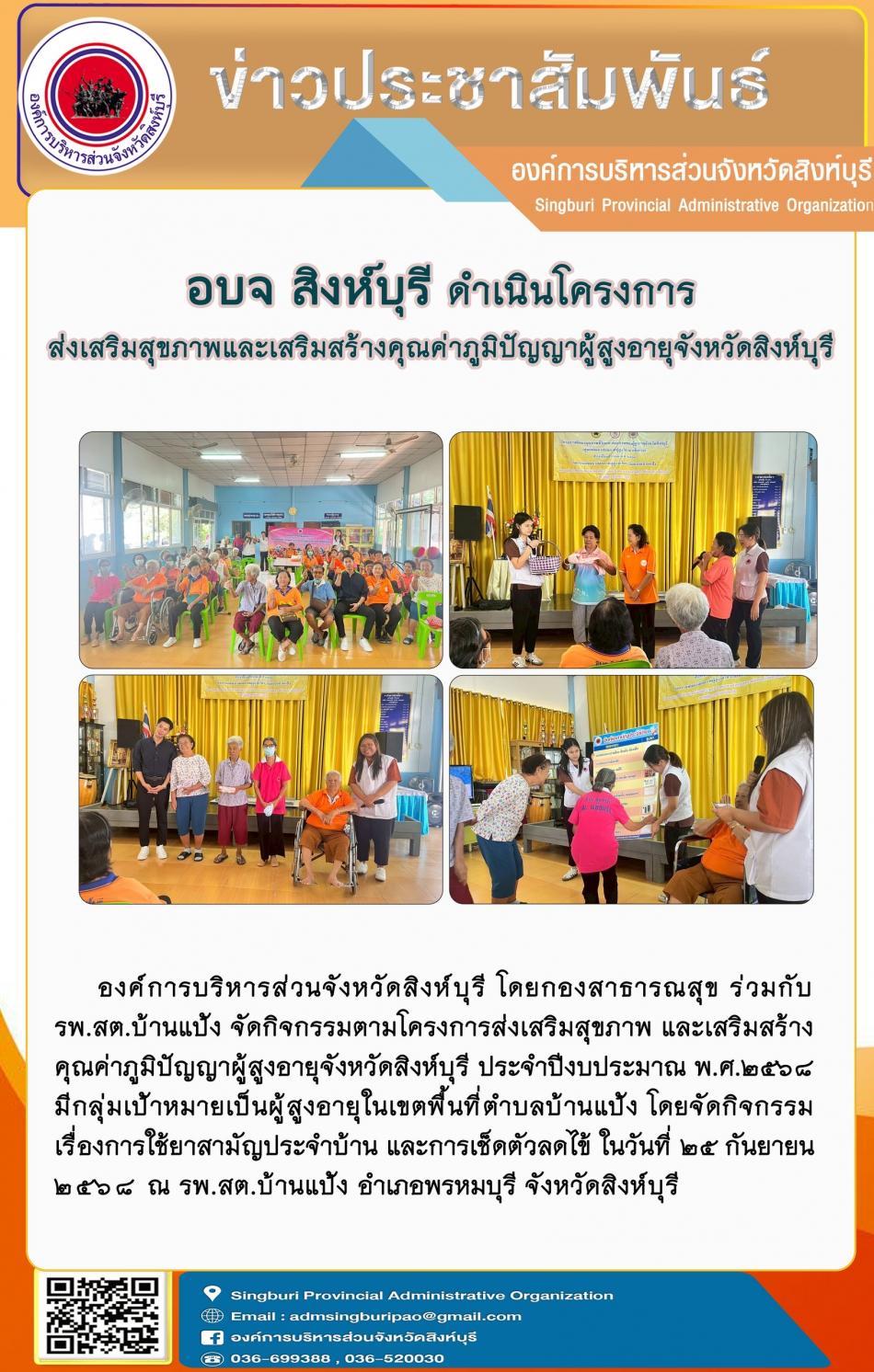 อบจ.สิงห์บุรี ดำเนินโครงการส่งเสริมสุขภาพและเสริมสร้างคุณค่าภูมิปัญญาผู้สูงอายุจังหวัดสิงห์บุรี [25 กันยายน 2568]
