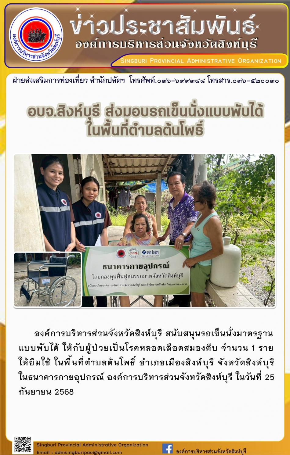 อบจ. สิงห์บุรี ส่ามอบรถเข็นนั่งแบบพับได้ ในพื้นที่ตำบลต้นโพธิ์ [25 กันยายน 2568]