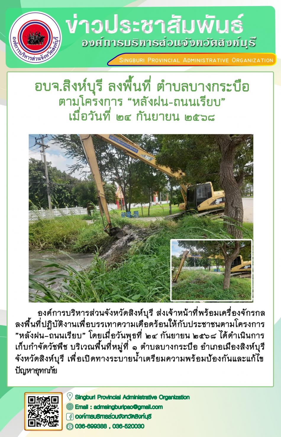 อบจ.สิงห์บุรี ลงพื้นที่ ตำบลบางกระบือ ตามโครงการ “ หลัง ฝน- ถนนเรียบ” [24 กันยายน 2568]