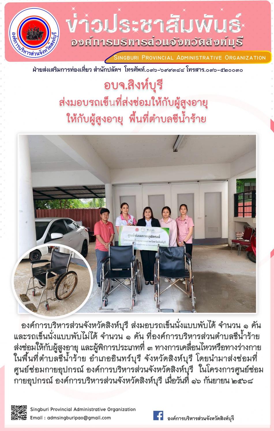 อบจ. สิงห์บุรี ส่งมอบรถเข็นที่ส่งซ่อมให้กับผู้สูงอายุ ให้กับผู้สูงอายุ พื้นที่ตำบลชีน้ำร้าย [16 กันยายน 2568]