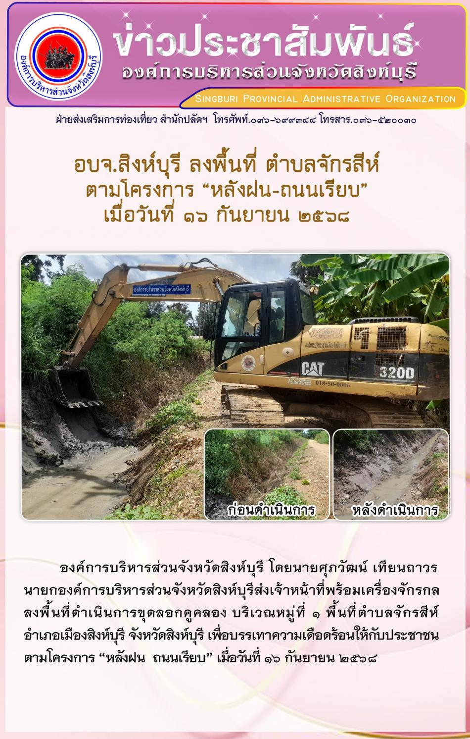 อบจ. สิงห์บุรี ลงพื้นที่ ตำบลจักรสีห์ ตามโครงการ “ หลังฝน-ถนนเรียบ” [16 กันยายน 2568]