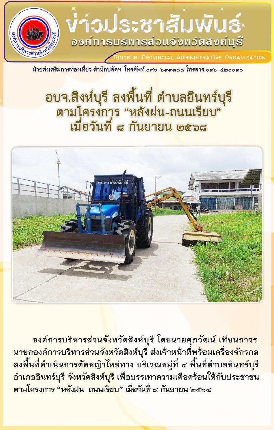 อบจ. สิงห์บุรี ลงพื้นที่ ตำบลอินทร์บุรี ตามโครงการ “ หลังฝน-ถนนเรียบ” [8 กันยายน 2568]
