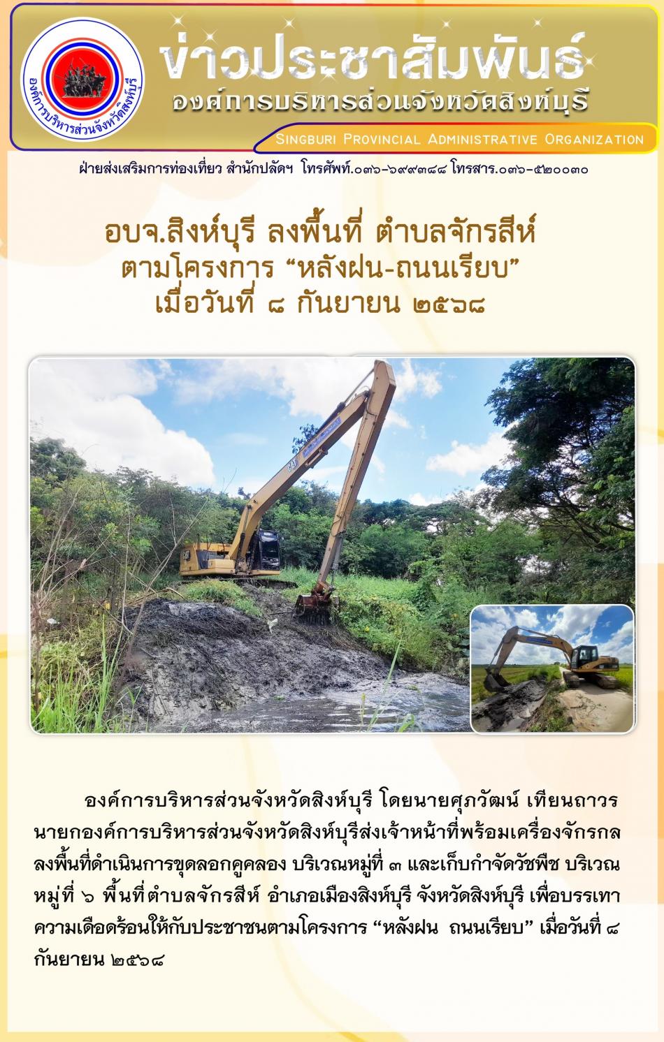 อบจ. สิงห์บุรี ลงพื้นที่ ตำบลจักรสีห์ ตามโครงการ “ หลังฝน-ถนนเรียบ” [9 กันยายน 2568]
