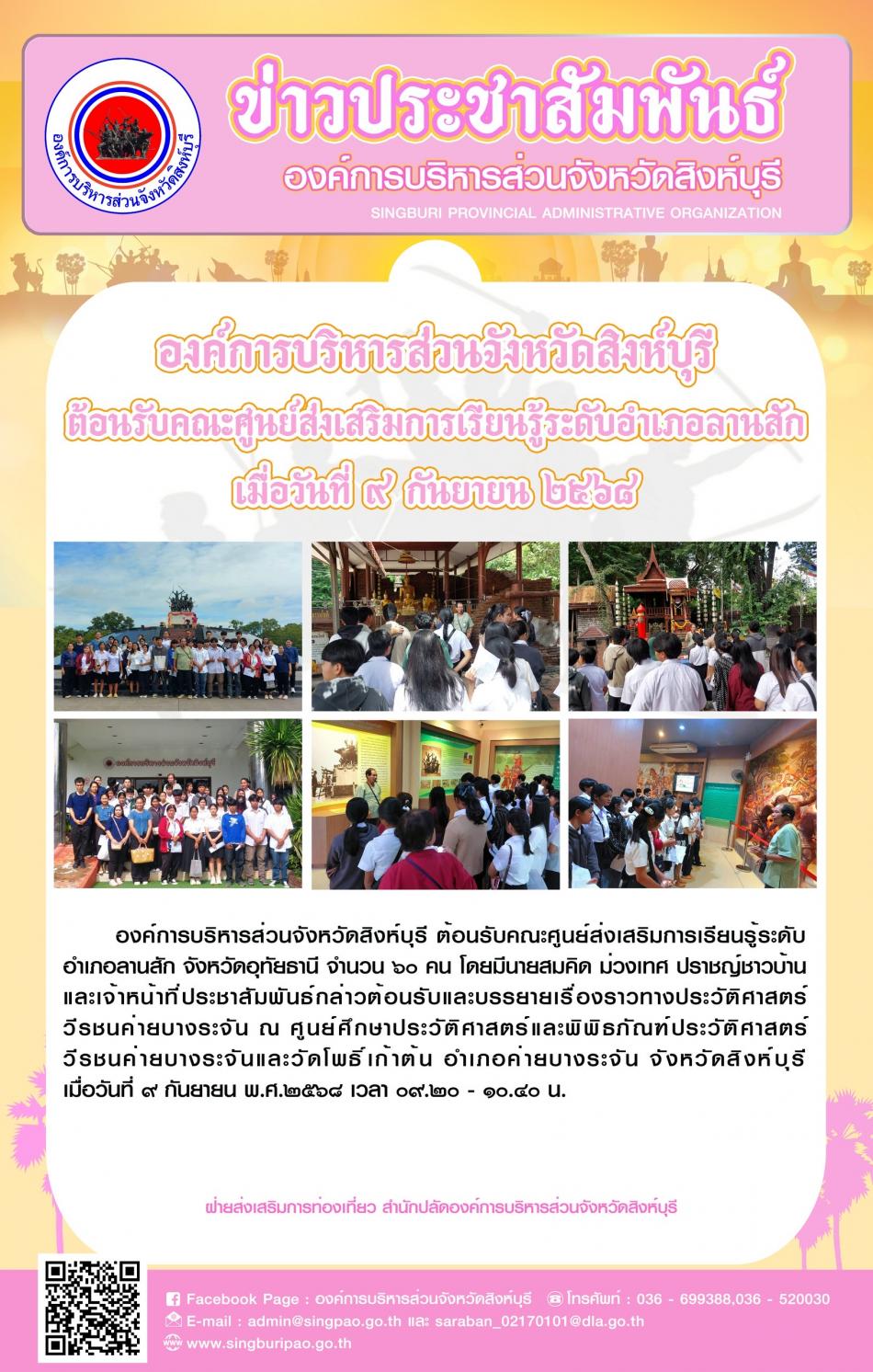 องค์การบริหารส่วนจังหวัดสิงห์บุรี ต้อนรับคณะศูนย์ส่งเสริมการเรียนรู้ระดับอำเภอลานสัก [9 กันยายน 2568]
