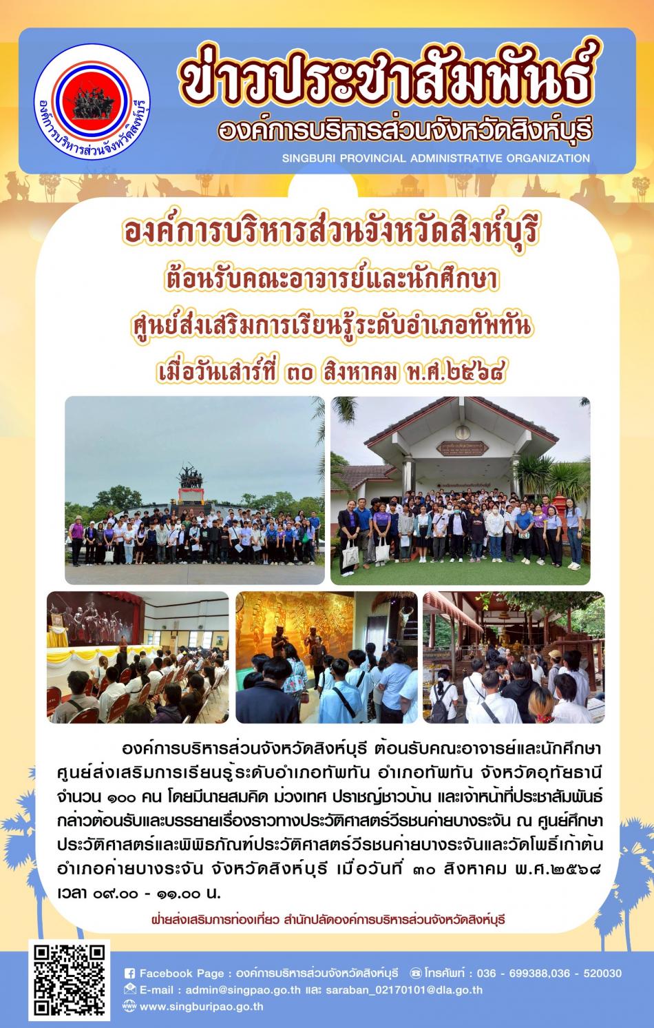 องค์การบริหารส่วนจังหวัดส่วนจังหวัดสิงห์บุรี ต้อนรับคณะอาจารย์และนักศึกษา ศูนย์ส่งเสริมการเรียนรู้ระดับอำเภอศูนย์ส่งเสริมการเรียนรู้ระดับอำเภอทัพทัน [30 สิงหาคม 2568]