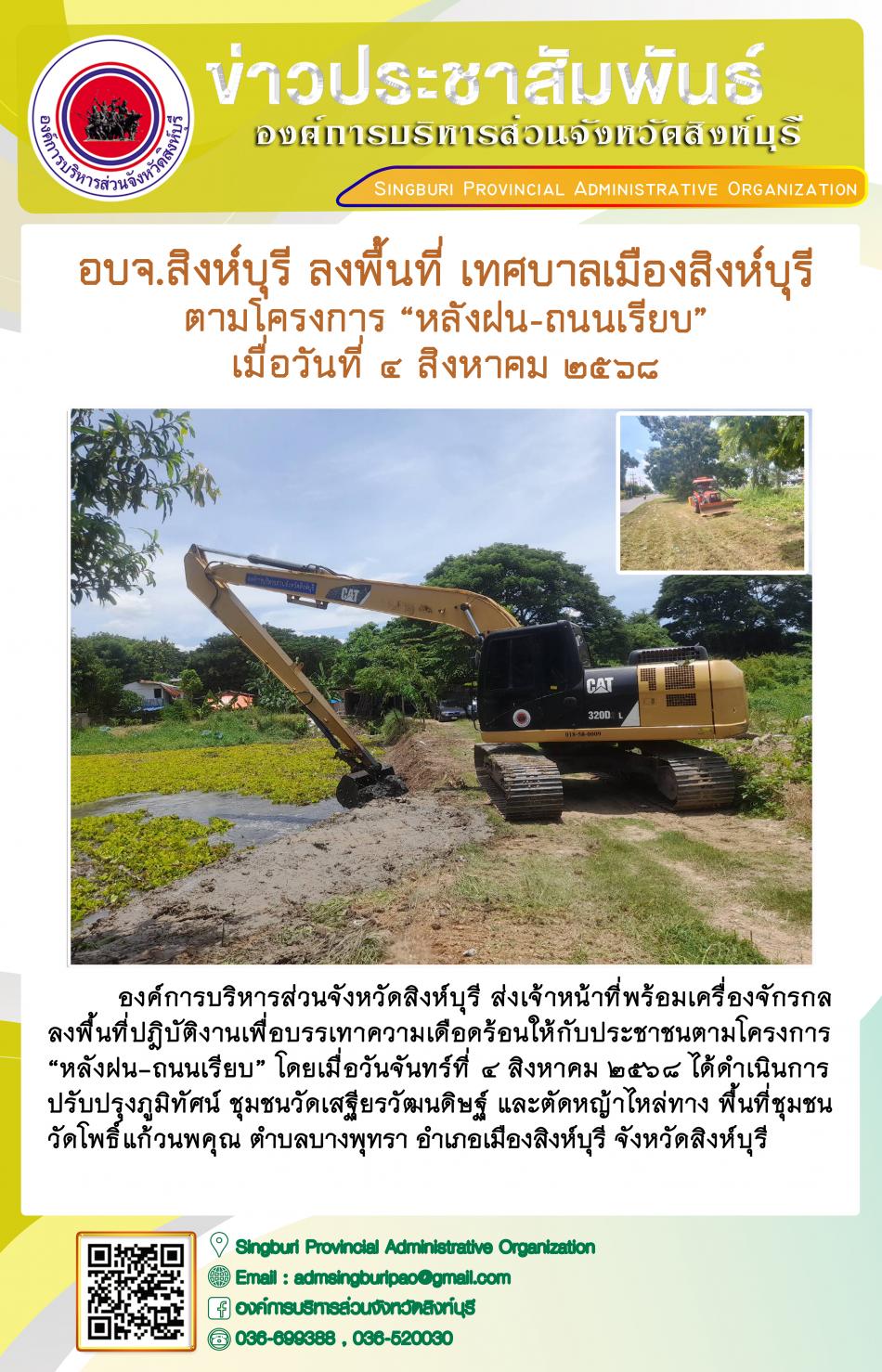 อบจ.สิงห์บุรี ลงพื้นที่ เทศบาลเมืองสิงห์บุรี ตามโครงการ "หลังฝน - ถนนเรียบ" [4 สิงหาคม 2568]
