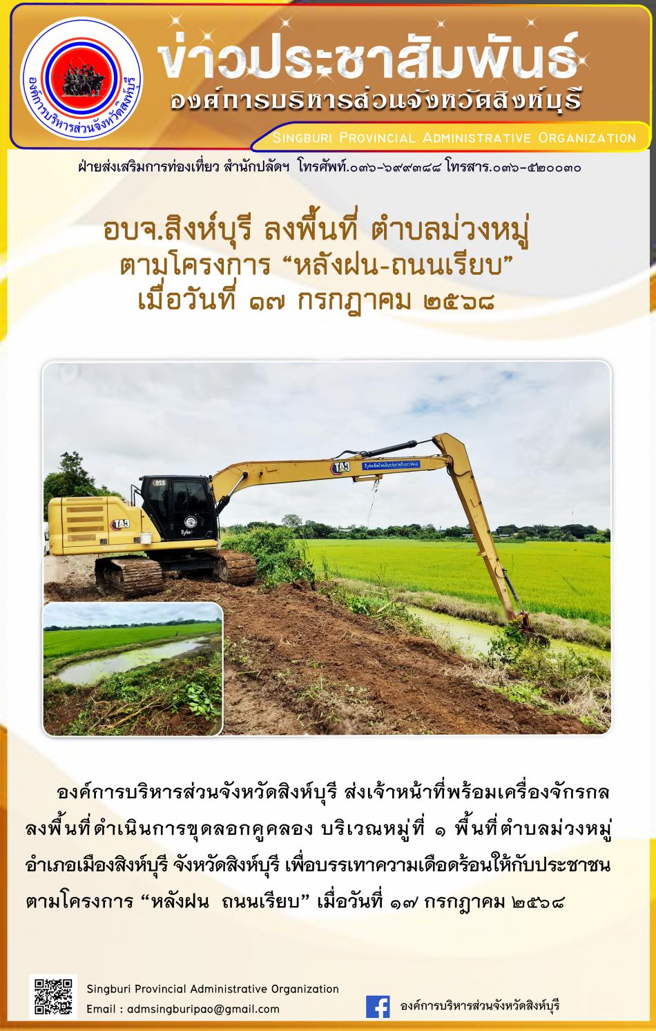 อบจ.สิงห์บุรี ลงพื้นที่ ตำบลม่วงหมู่ ตามโครงการ "หลังฝน - ถนนเรียบ" [17 กรกฎาคม 2568]