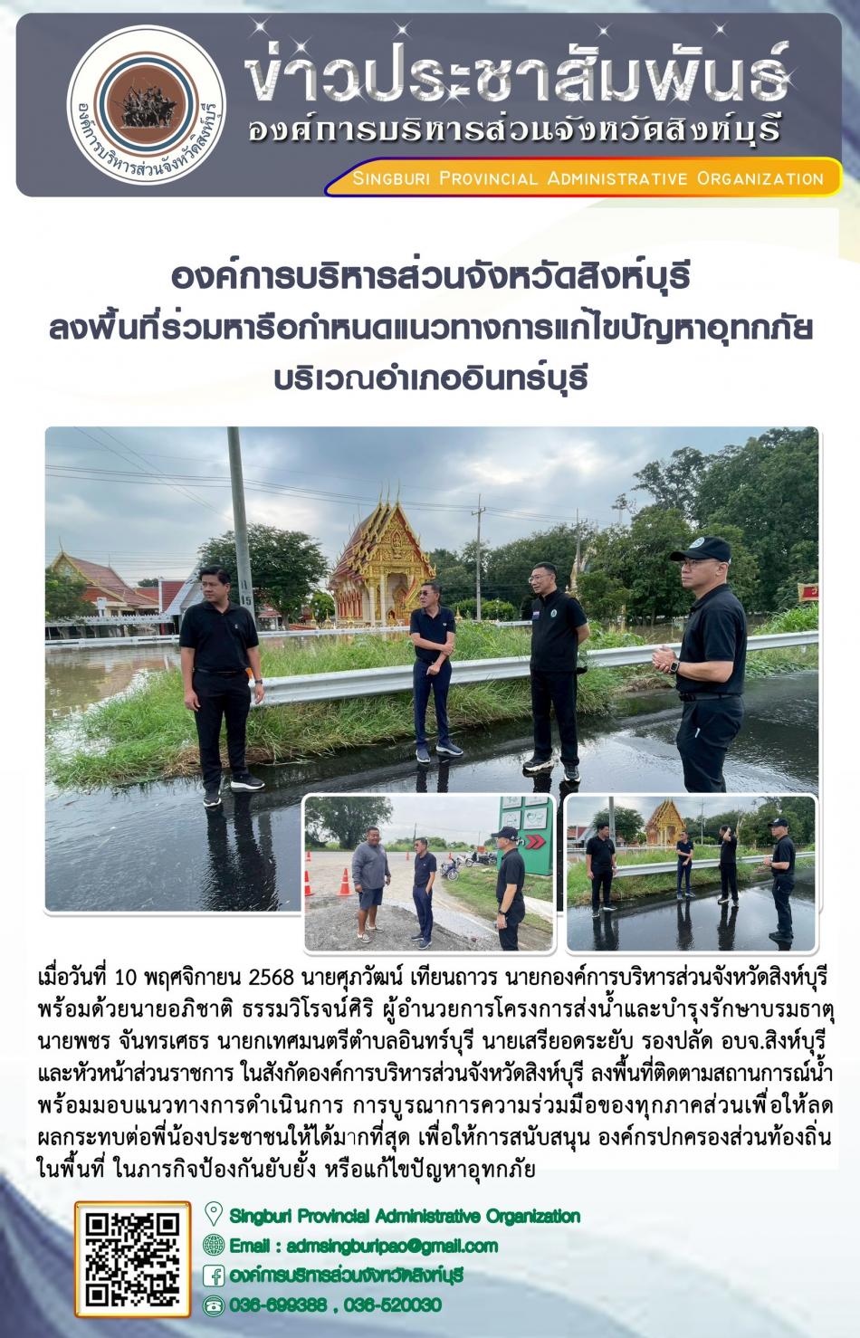 องค์การบริหารส่วนจังหวัดสิงห์บุรี ลงพื้นที่ร่วมหารือกำหนดแนวทางการแก้ไขปัญหาอุทกภัย บริเวณอำเภออินทร์บุรี [10 พฤศจิกายน 2568]