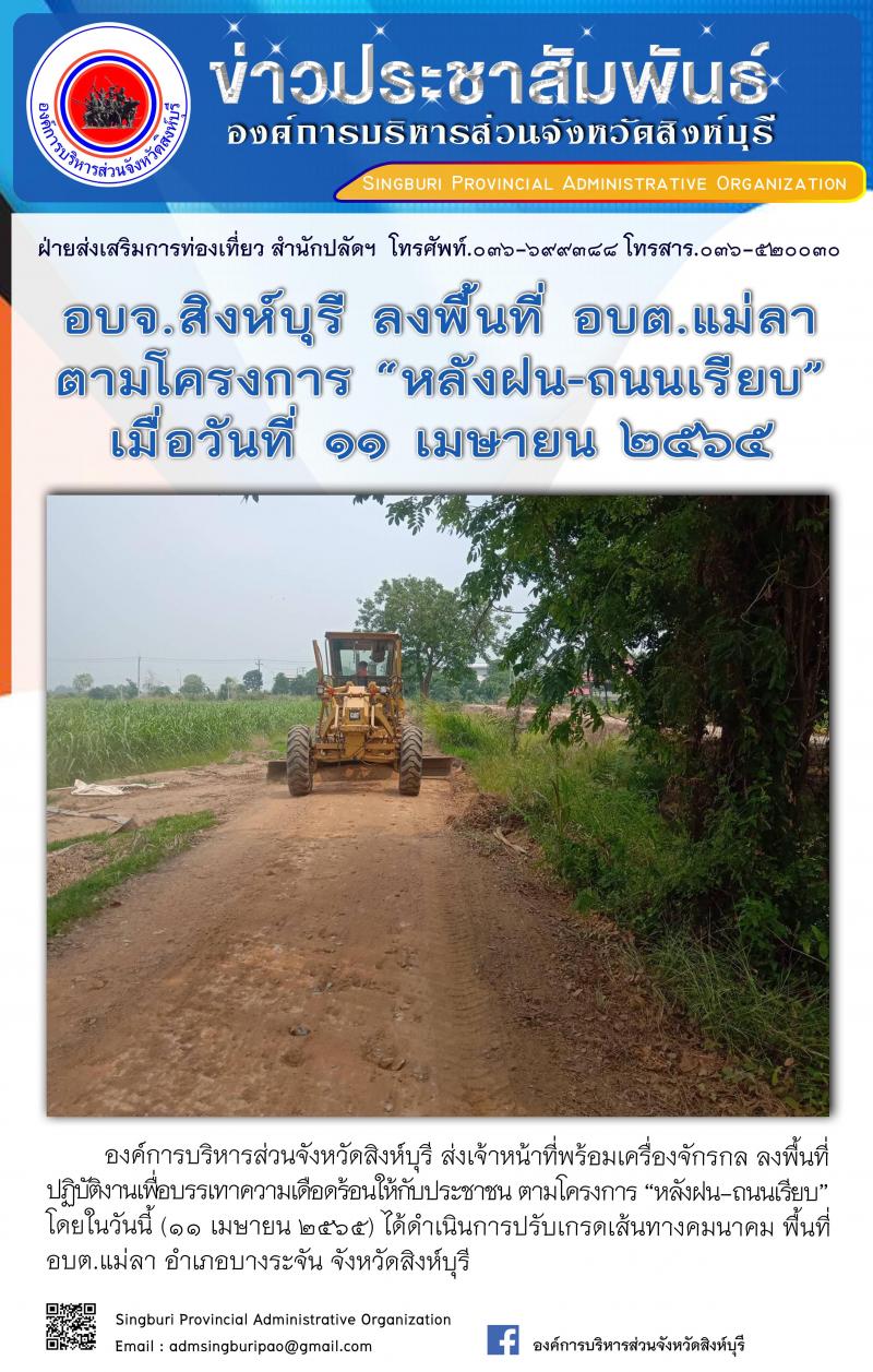 อบจ.สิงห์บุรี ลงพื้นที่ ตามโครงการ "หลังฝนถนนเรียบ"