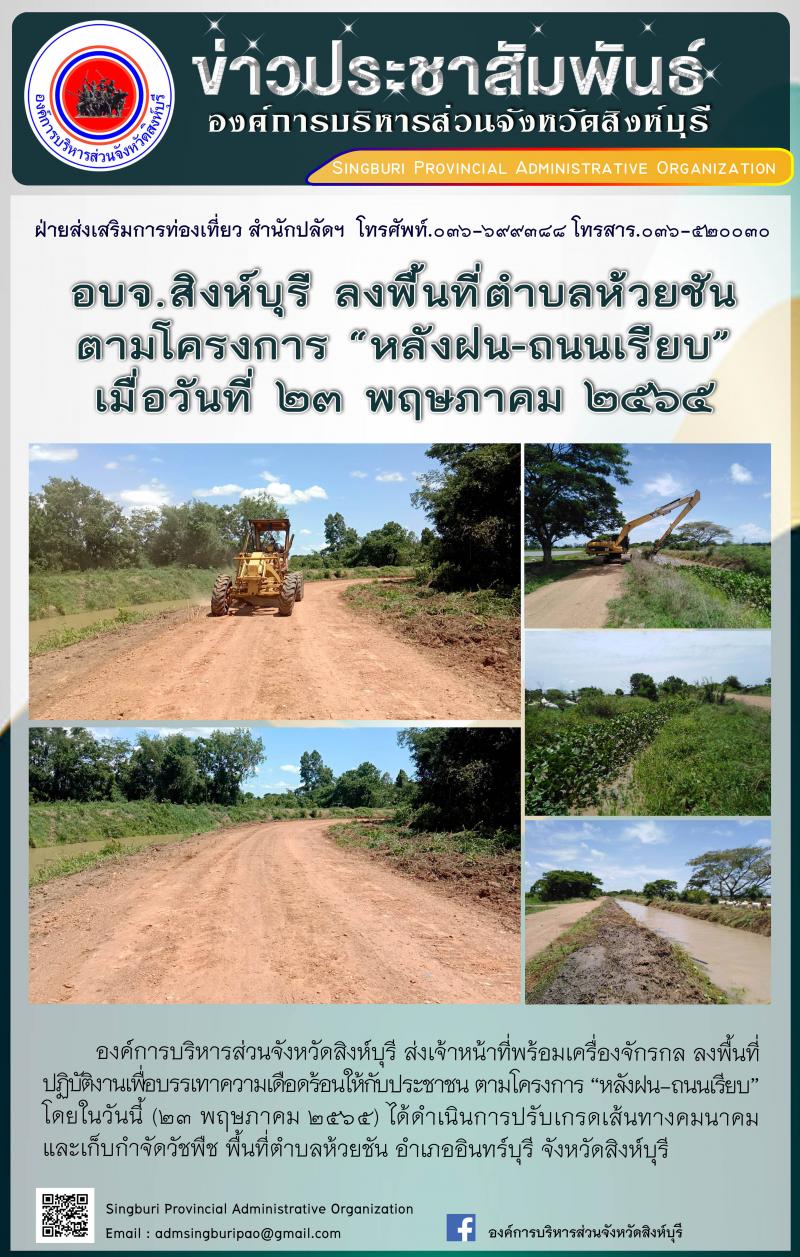อบจ.สิงห์บุรี ลงพื้นที่ตามโครงการ "หลังฝน-ถนนเรียบ"