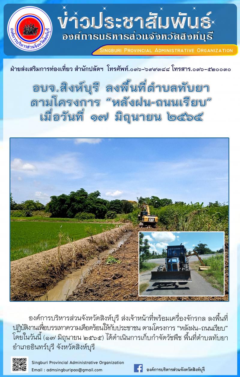 อบจ.สิงห์บุรี ลงพื้นที่ตามโครงการ "หลังฝนถนนเรียบ"