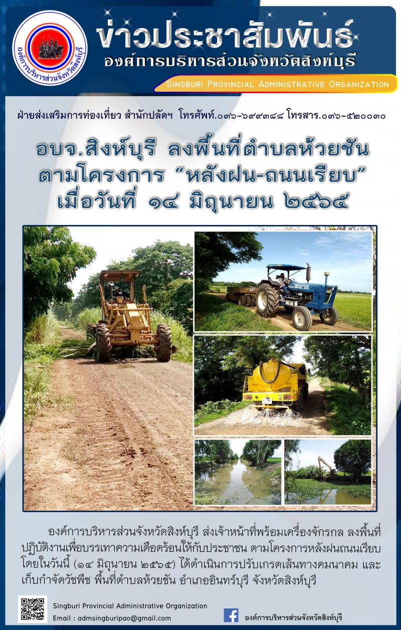 อบจ.สิงห์บุรี ลงพื้นที่ตามโครงการ "หลังฝนถนนเรียบ"