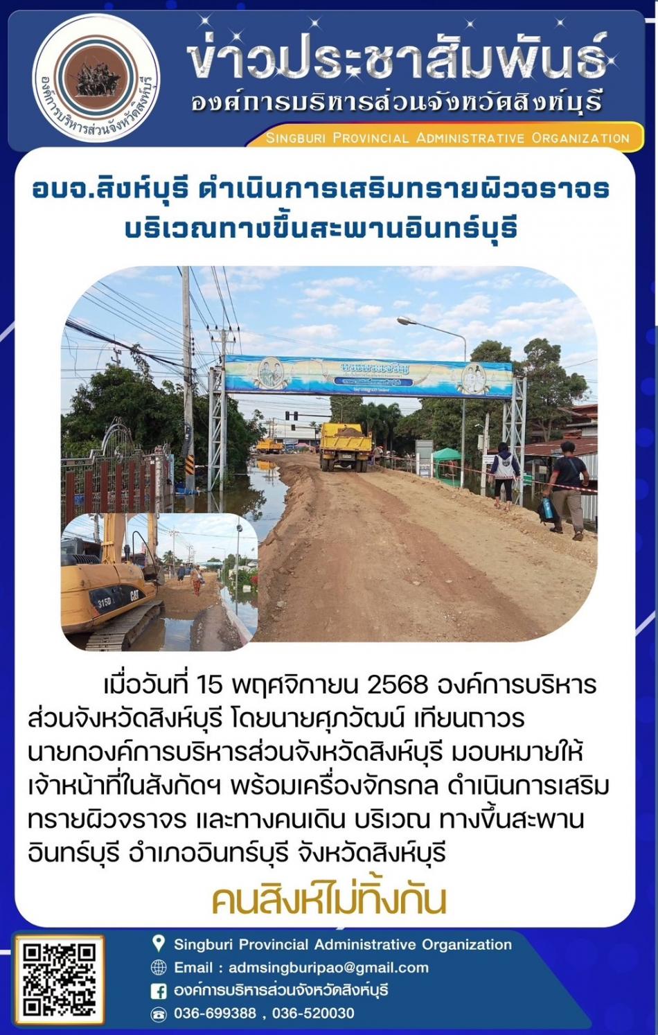 อบจ.สิงห์บุรี ดำเนินการเรริมทรายผิวจราจร บริเวณทางขึ้นสะพานอินทร์บุรี [15 พฤศจิกายน 2568]