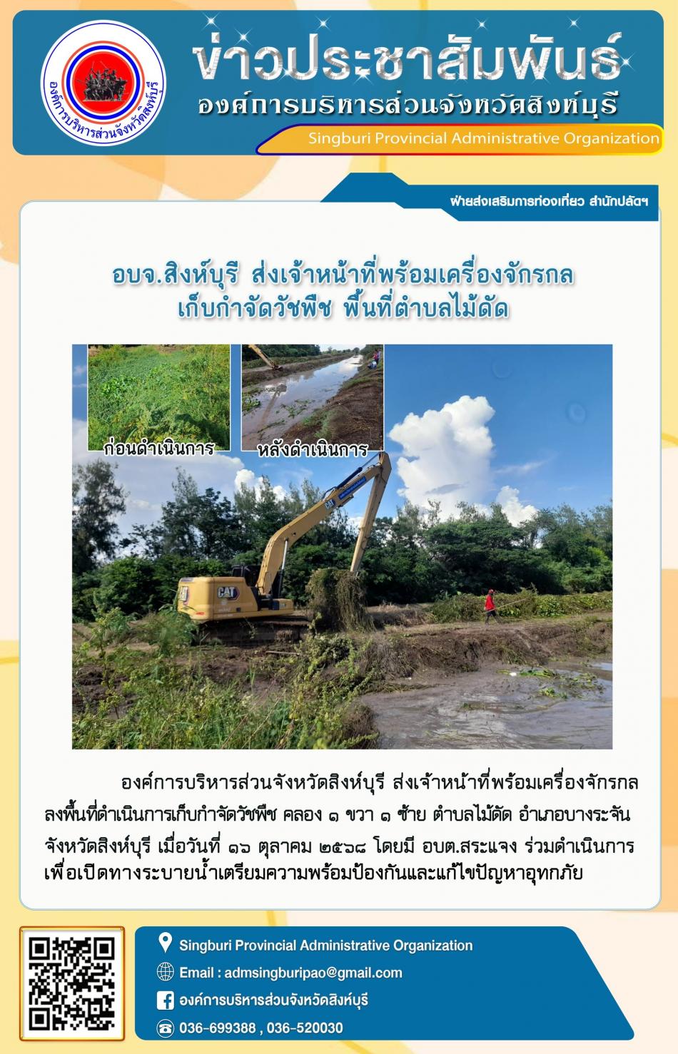 อบจ.สิงห์บุรี ส่งเจ้าหน้าที่พร้อมเครื่องจักรกล เก็บกำจัดวัชพืช พื้นที่ตำบลไม้ดัด [16 ตุลาคม 2568]