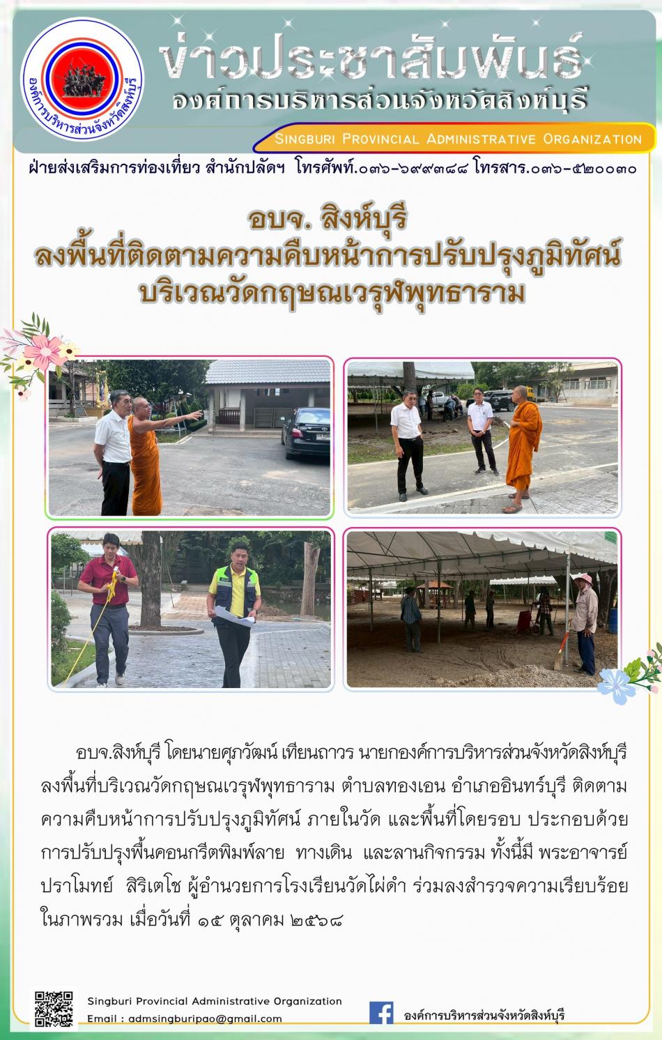 อบจ.สิงห์บุรี ลงพื้นที่ติดตามความคืบหน้าการปรับปรุงภูมิทัศน์บริเวณวัดกฤษเวรุฬพุทธาราม [15 ตุลาคม 2568]