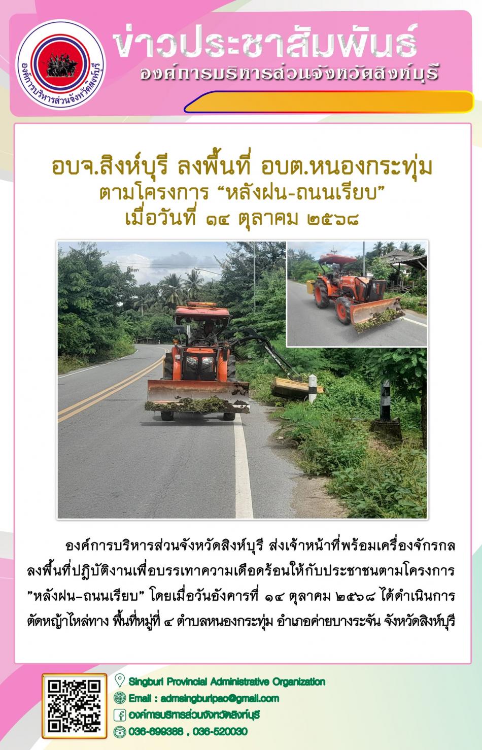 อบจ.สิงห์บุรี ลงพื้นที่ อบต.หนองกระทุ่ม ตามโครงการ “ หลัง ฝน- ถนนเรียบ” [14 ตุลาคม 2568]