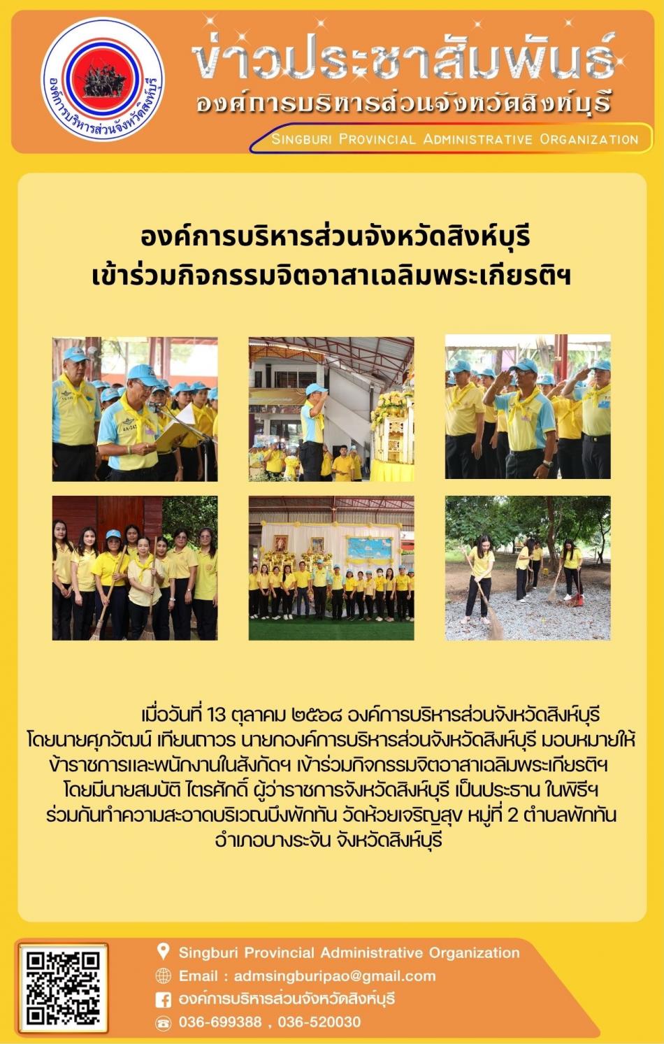 องค์การบริหารส่วนจังหวัดสิงห์บุรีเข้าร่วมกิจกรรมจิตอาสาเฉลิมพระเกียรติฯ [13 ตุลาคม 2568]